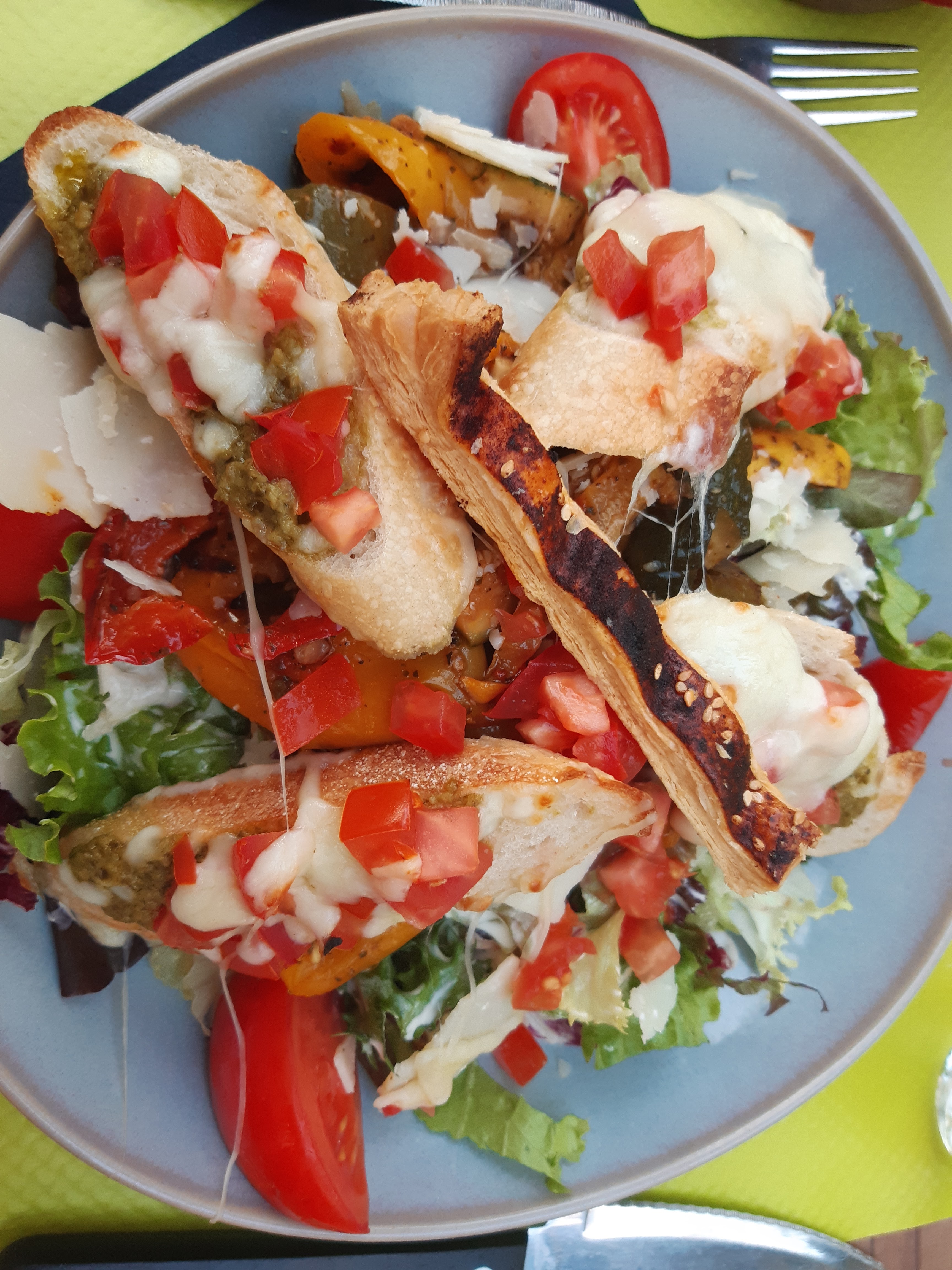 Nous nous sommes sentis très à l'aise ici. Le service était sympathique et courtois ! La nourriture était fraîche et très savoureuse. nous avions des pâtes et de la salade. Plein et satisfait tout autour !