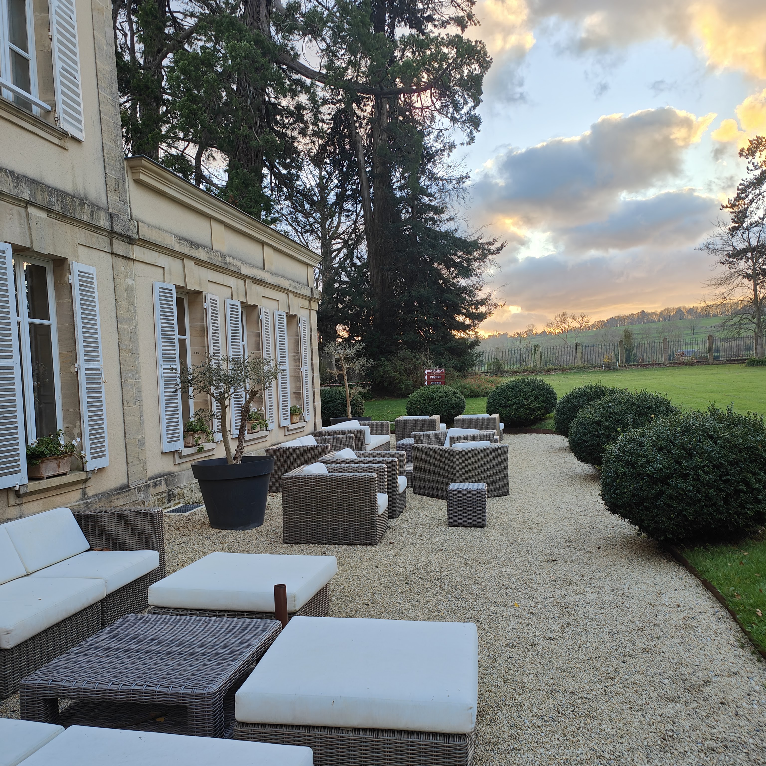 Le Château et le parc sont magnifiques !Nous avons dîné à deux .Serveurs polis et attentionnés! It is very Difficult today to find Restaurant Where everything is perfect and The Waiters speak english especially perfectly …Les canapés « arronchini et purée de céleri noisette » avec l’apéritif ,une tuerie !!l’entrée « la tomate et le maquereau « et le plat « le carré d’agneau et le bar « ,un régal ,le dessert « vacherin fraise et abricot dulcey « raffiné,artistique …délicieux !En clair des canapés …aux mignardises,des tableaux dans nos assiettes !Une mention pour le jus passion …mais dommage que le meuble »armoire » dans la salle de restaurant ne soit pas coordonné au reste de la déco !Ce restaurant mériterait une étoile au guide Michelin !