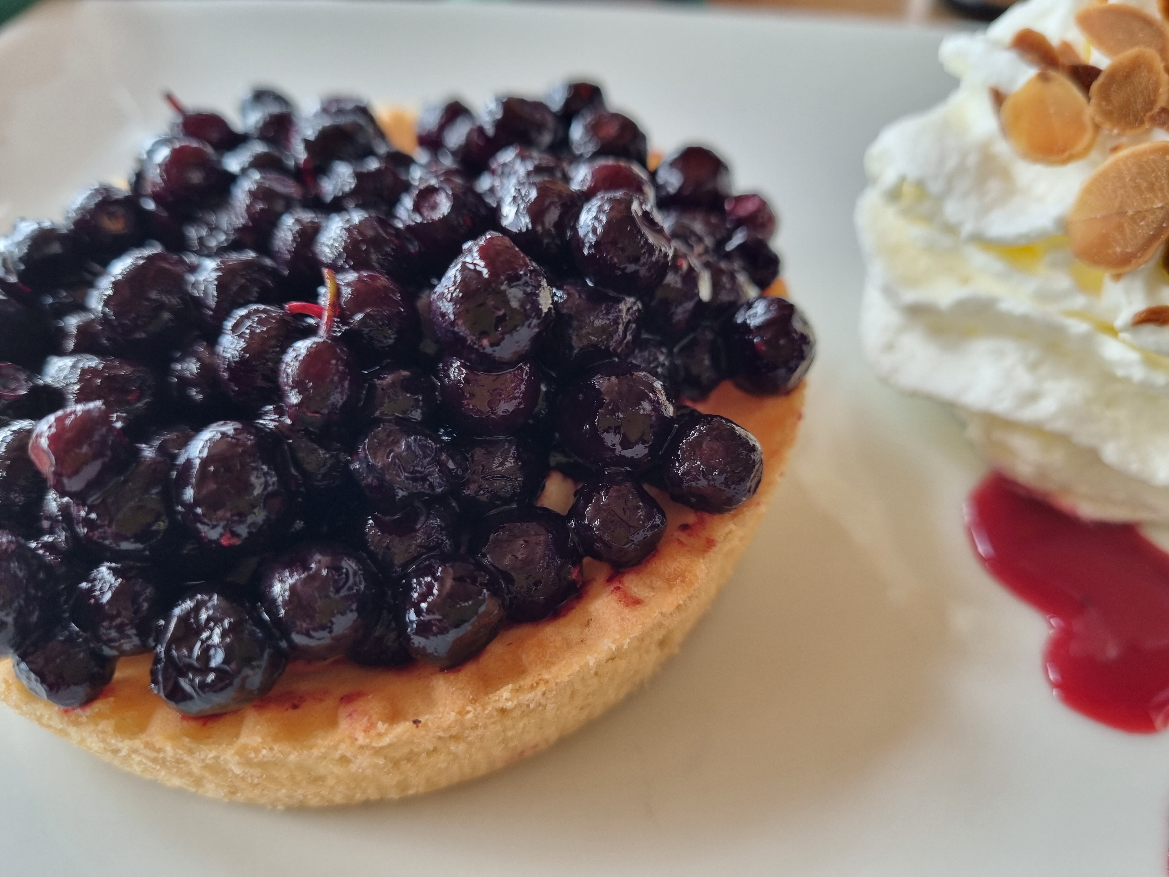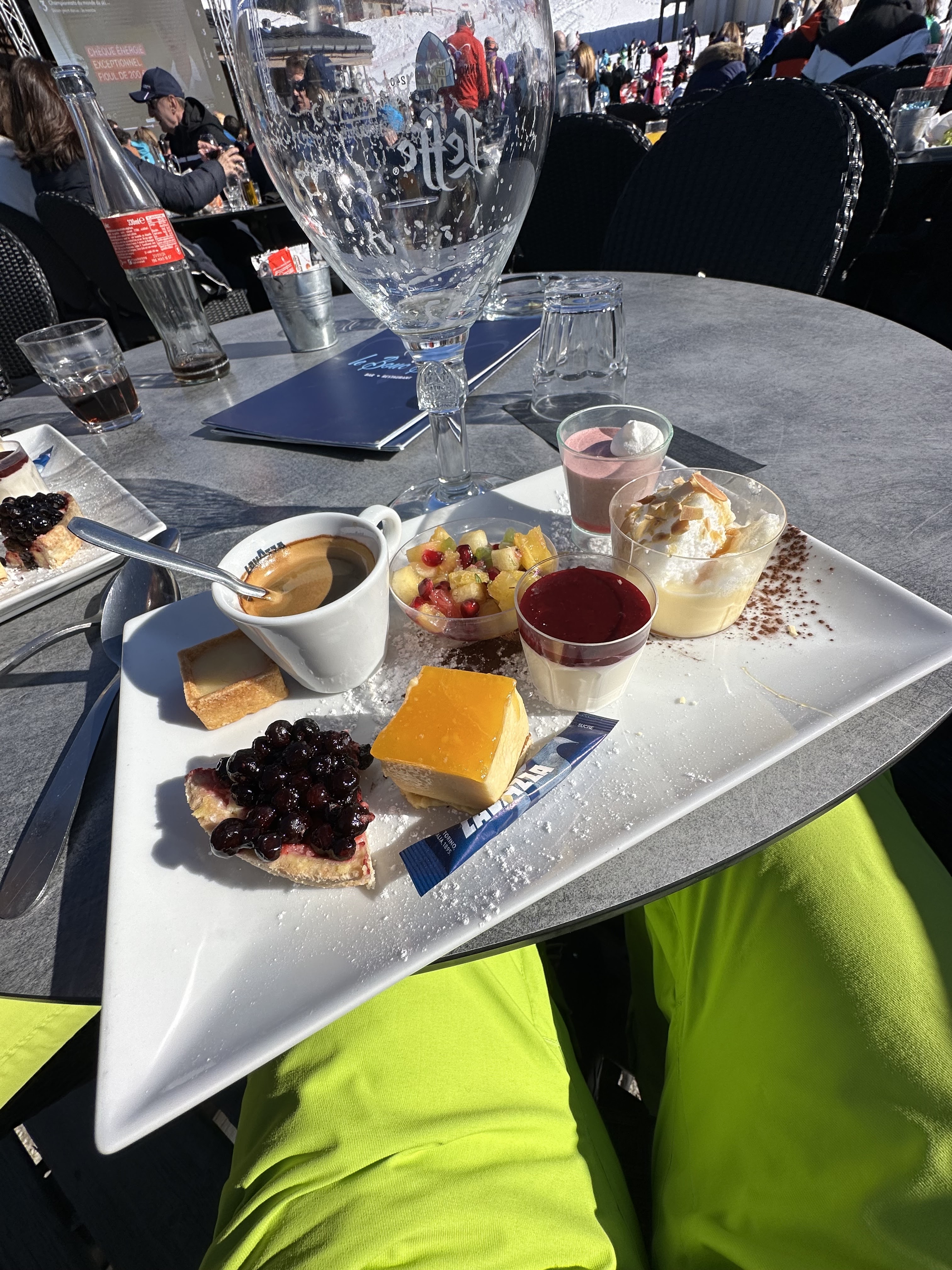 Nous avons dégusté une délicieuse tarte aux myrtilles et un café. C'était beau sur les pistes, blanc partout, super cosy.