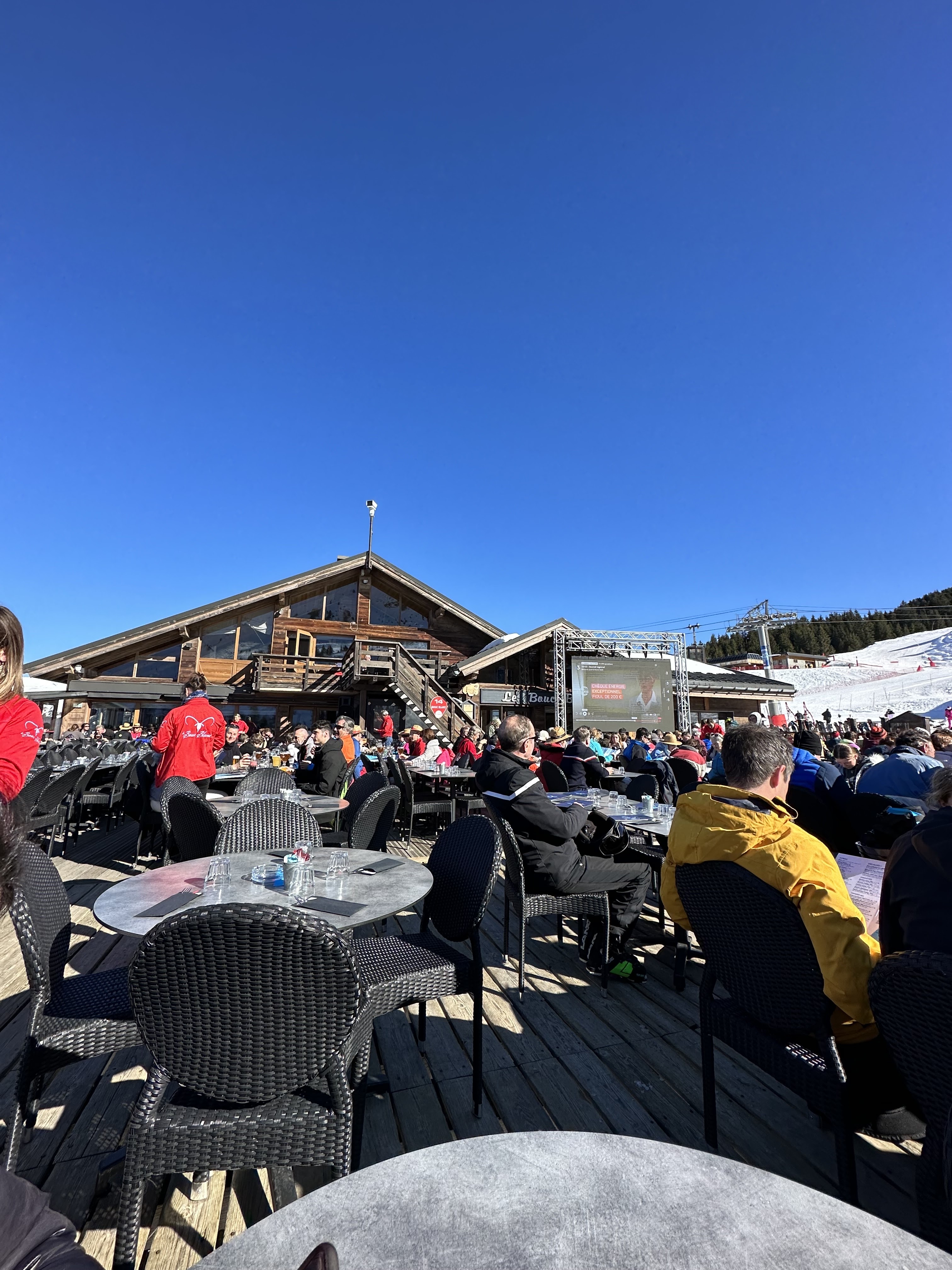 Nourriture moyenne, service médiocre et lent, trop cher. L'emplacement est génial mais il n'y aura plus de soleil sur la terrasse après 14h30. Pour le même prix, vous pouvez trouver une nourriture et une ambiance bien meilleures ailleurs dans les 3 Vallées.