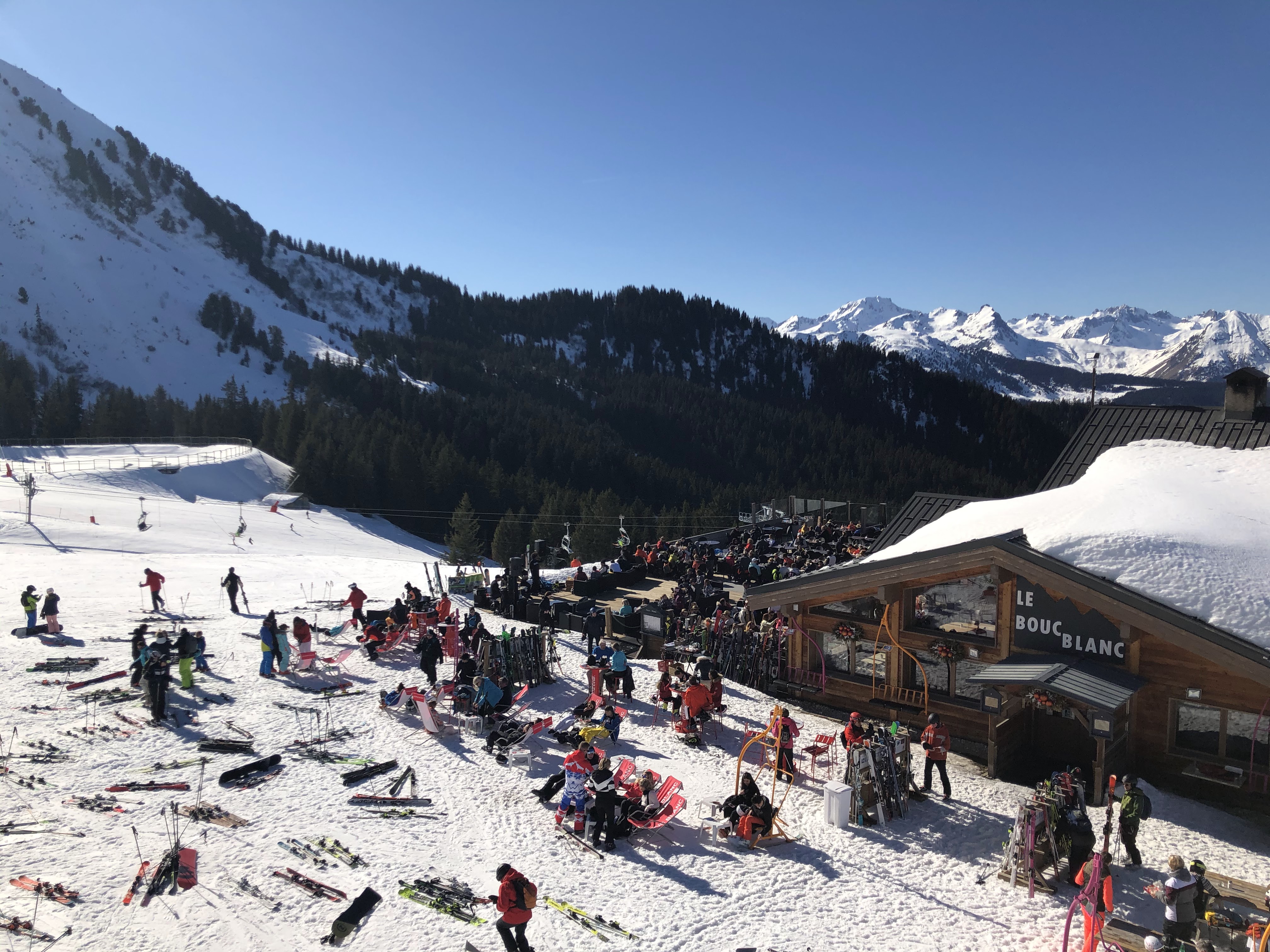 J ai adore cet endroit , belle lumière belle vue sur les pistes, terrasse immense et confortable , des chaises longues a disposition pour bronzer et des prix très raisonnables . Accessible aux non skieurs via la télécabine
