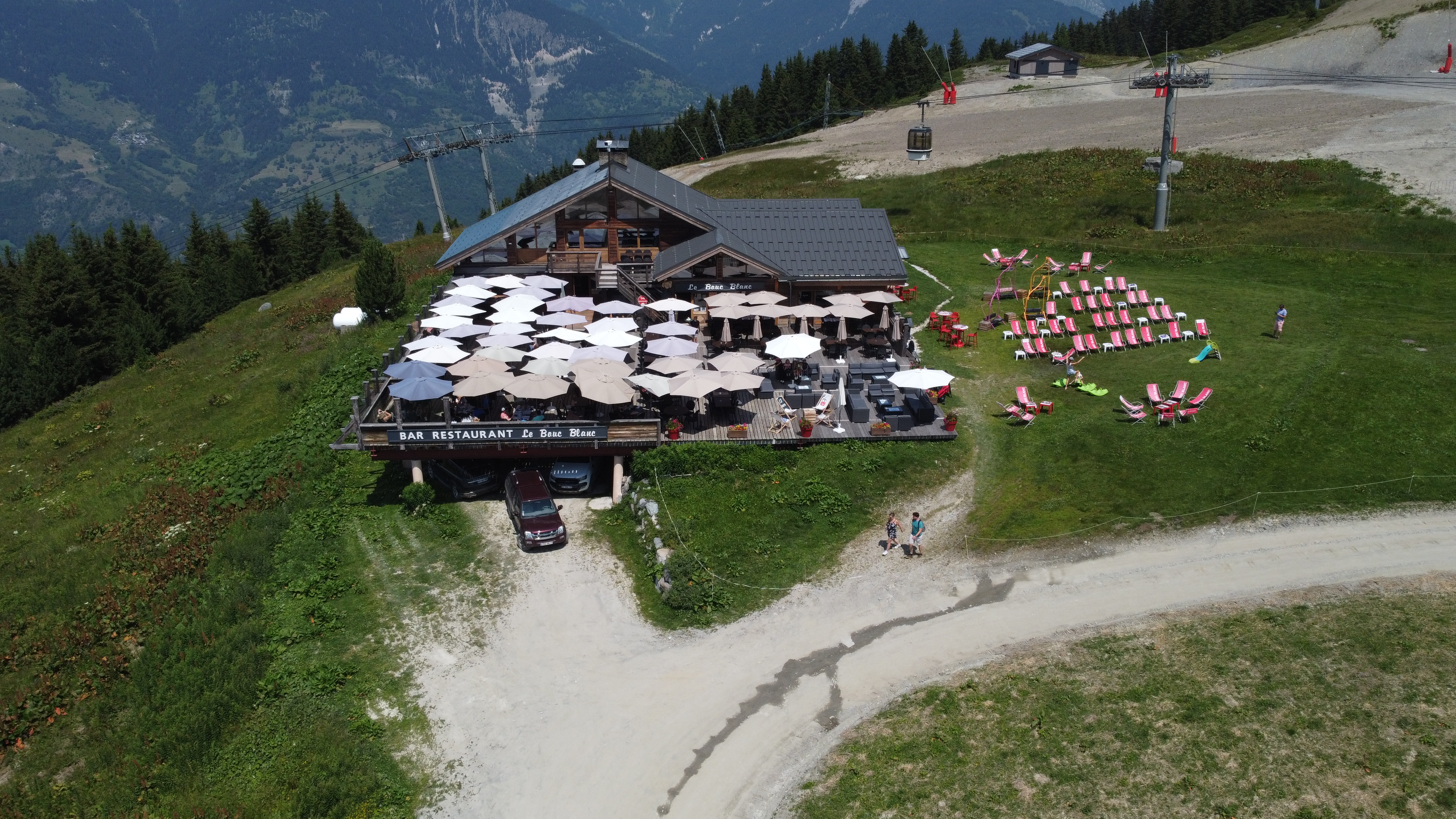 Il y a un restaurant à service complet et un café self-service ici et les deux sont bons. Une très courte descente depuis la télécabine et vous pouvez toujours accéder au télésiège du Dou des Lanches depuis ici aussi.