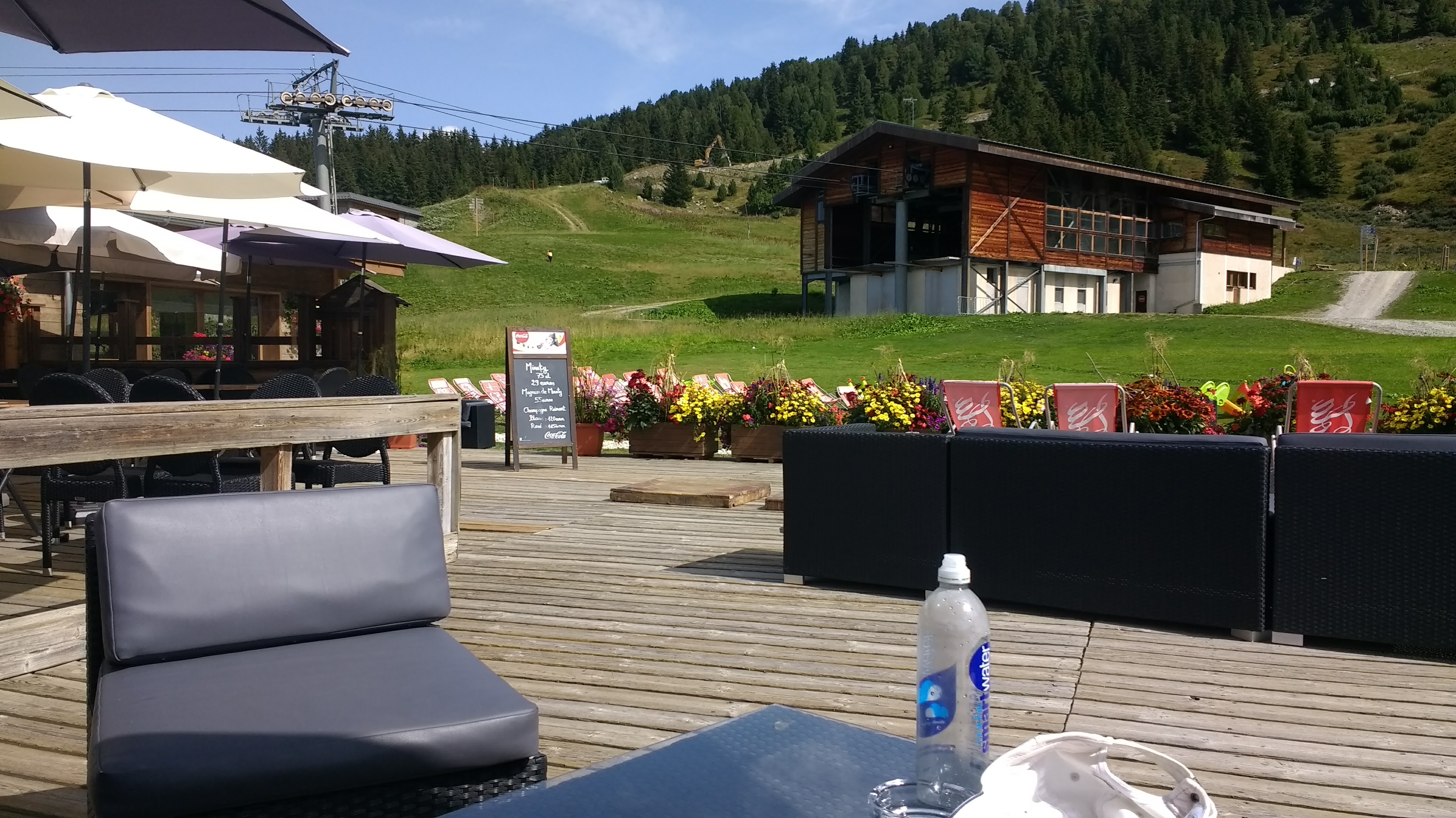 Très chouette endroit en été aussi, pour se désaltérer après la montée du Bouc Blanc. La vue panoramique est splendide et la terrasse très agréable. Nous n’avons pas testé la restauration, mais les glaces des enfants étaient généreuses et avaient l’air bonnes. Évidemment tout ça a un prix : c’est cher, on est à Courchevel (Jupiler 25cl : 5€, menthe à l’eau du robinet : 3€).