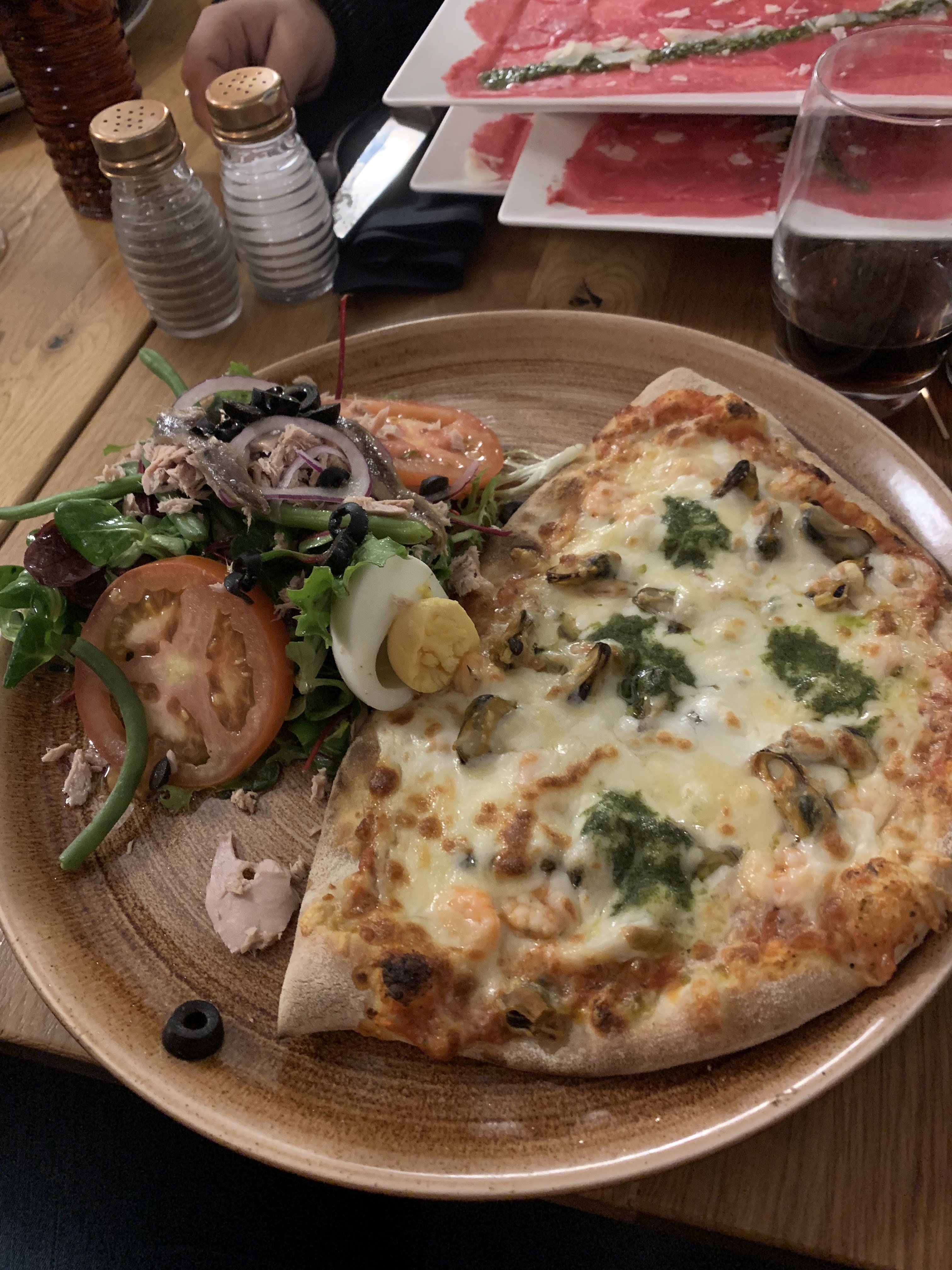 Tout d'abord si vous souhaitez goûter a ces mets, je vous conseille de réserver préalablement. En effet, le restaurant est vite remplie et il serait dommage de ne pas profiter de ce restaurant. Les mzts sont frais et de qualité, j'avais pris une moitié pizza/ moitié salade et je peux vous dire que j'avais largement mangé. Le service est agréable et rapide.