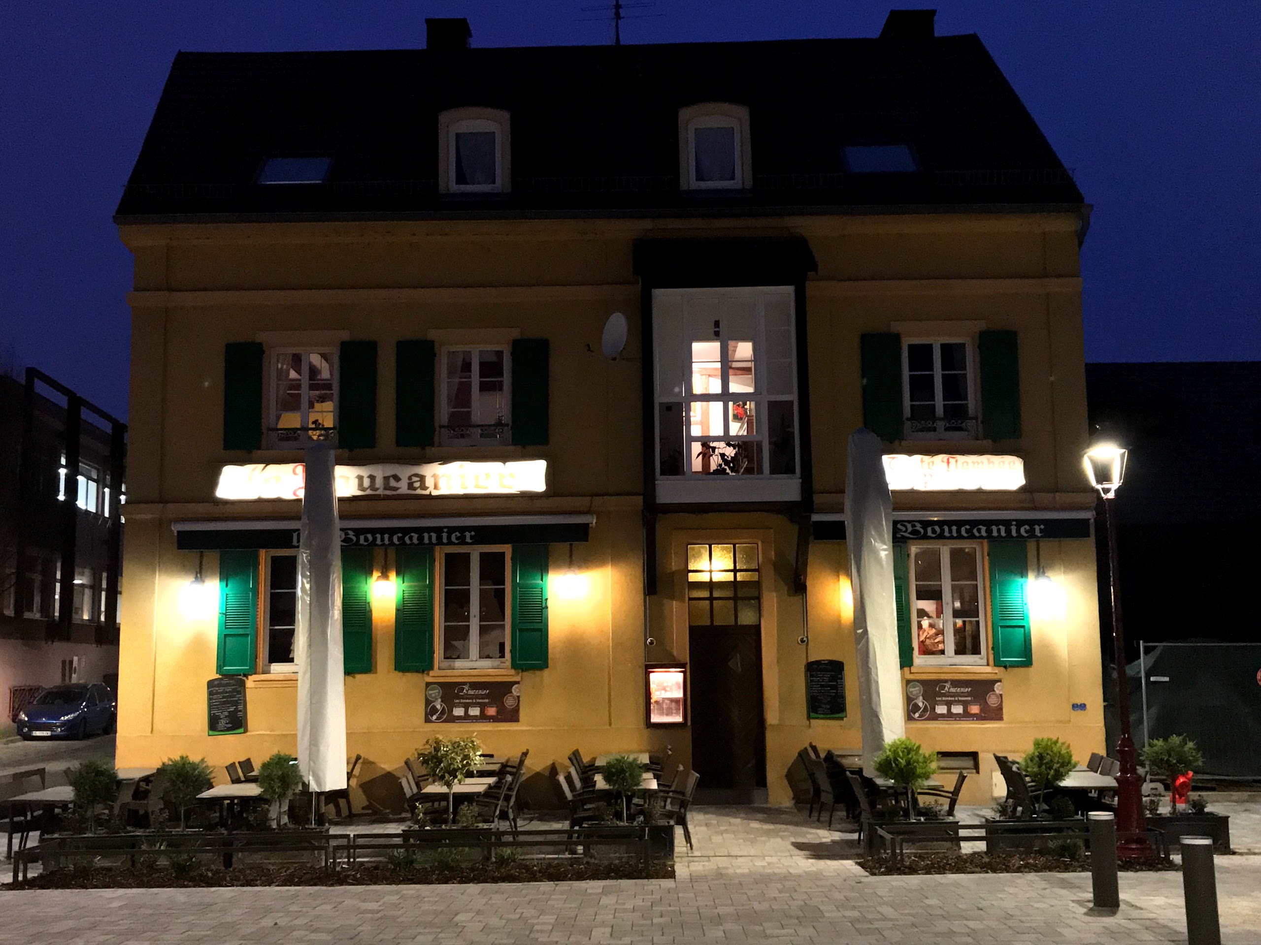 En déplacement avec deux collègues (conducteur de cars), nous sommes arrivés tard et nous avons été accueillis chaleureusement malgré le nombre important de client et l'heure tardive. Le cadre au calme sur une petite place agréable, intérieur est décoré avec soin et le personnel est accueillant chaleureux et souriant. Des pizzas et les salades sont très bonnes et les desserts maison sont aussi excellents. Du coup, nous y sommes allés deux jours de suite. Si vous passez à Schiltigheim n'hésitez pas à aller au boucanier vous ne serez pas déçu et très agréablement surpris. Merci à l'équipe