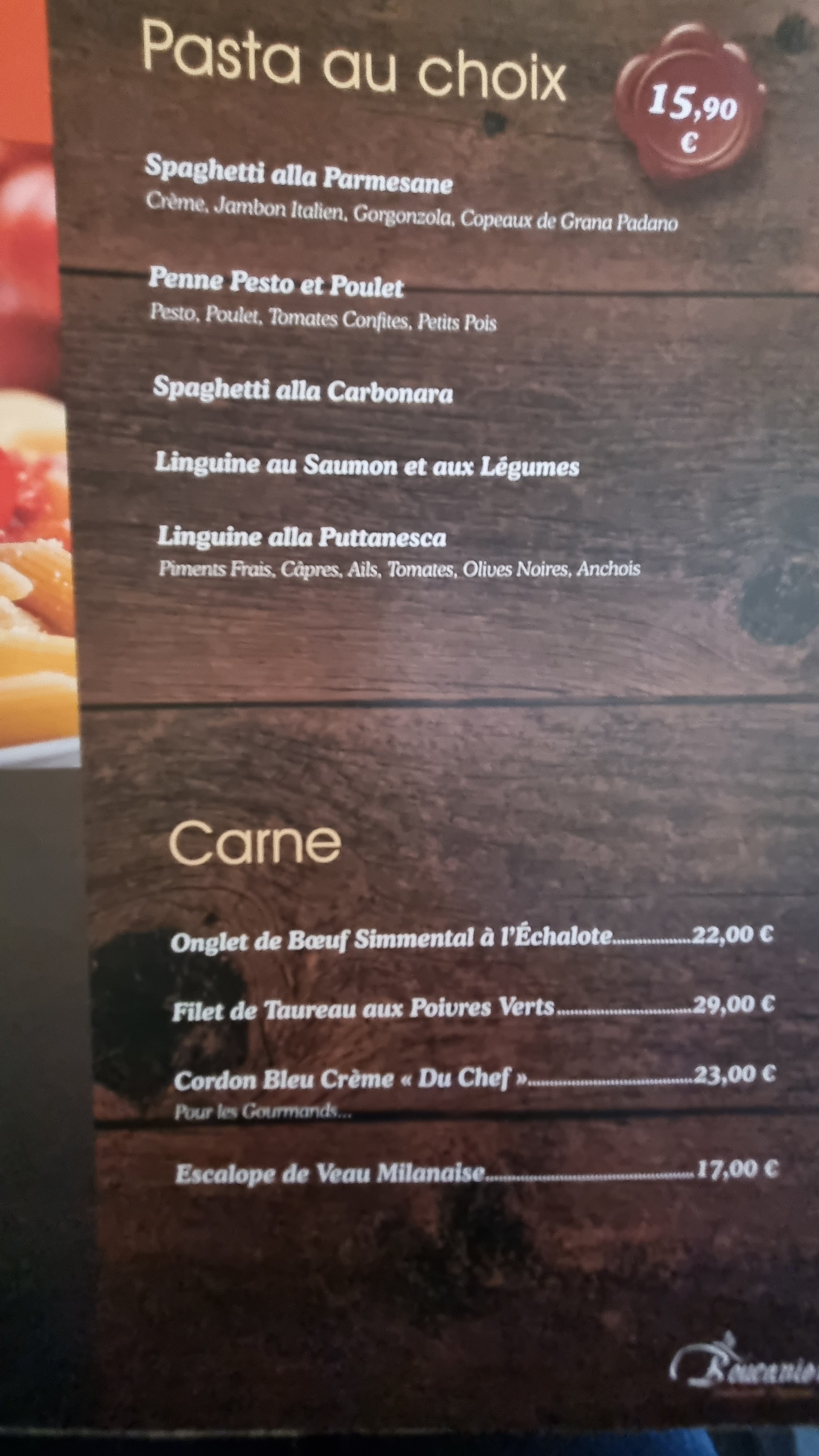 Le meilleur carpaccio du secteur Et qui plus est a volonté en formule Sinon patron et serveur et serveuse très gentils Une belle salle du bon vin de quoi passer une belle soirée
