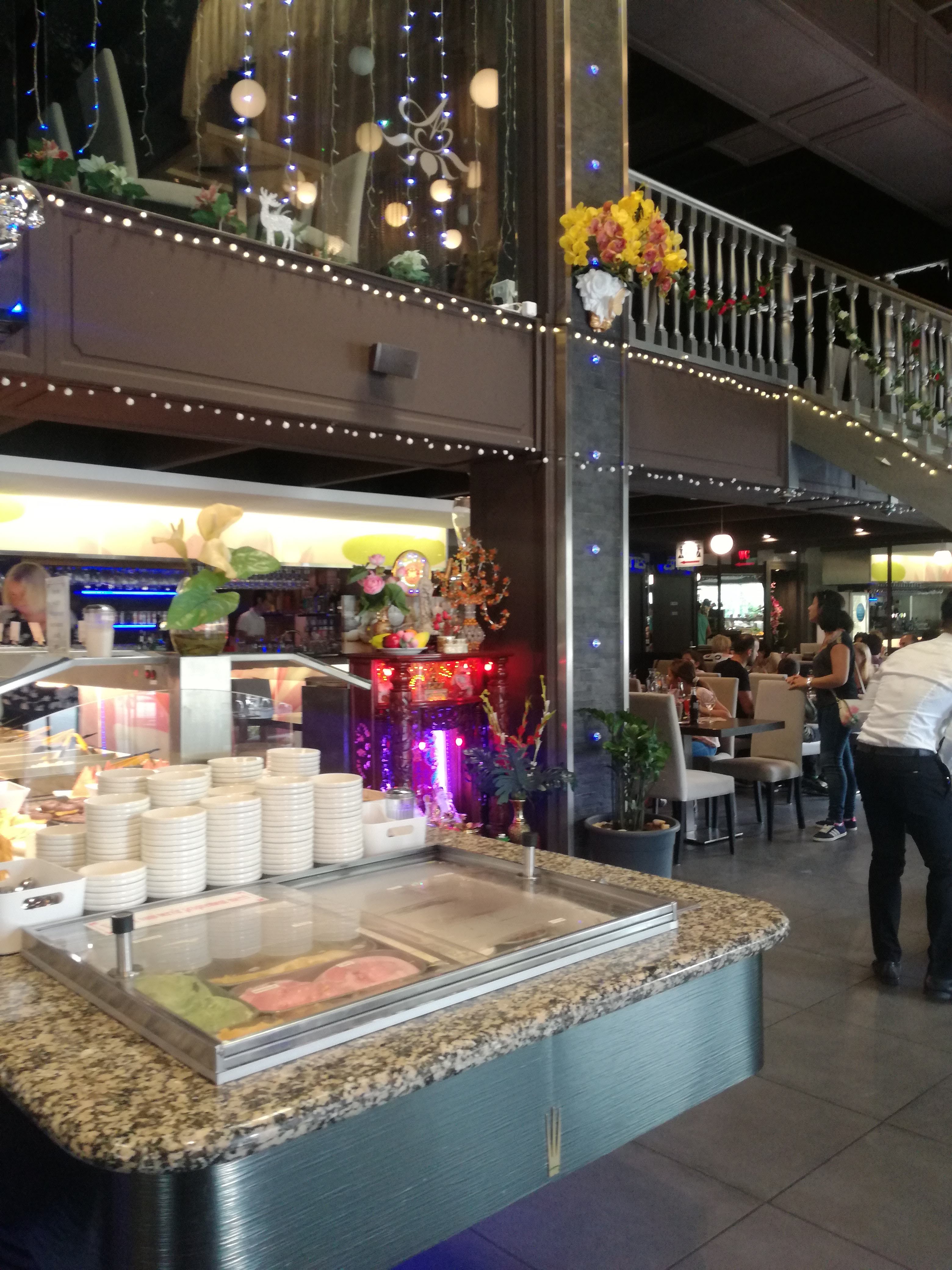 Alors voilà j'y suis allée car beaucoup de gens autour de moi en parlait. J'ai trouvé ce restaurant très sympas et très chic. J'ai beaucoup aimé la décoration et les serveurs étaient très gentils avec nous. Il n'y a pas eu de problème au niveau des places surtout qu'on était 7 ! Le buffet avait beaucoup de choix au niveau des mets traditionnels moi qui adore cela ! De plus le wok est juste MAGNIFIQUEMENT bon ! J'ai adoré et c'était très bien cuisiné. Au niveau des desserts, il y avait encore beaucoup de choix. Le seul bémol à souligner est le temps qui nous a manqué car le restaurant est très loin d'où j'habite et du coup nous étions un peu pressés vers la fin, les serveurs étaient déjà en train de débarrasser le buffet donc pour moi 22h c'est un peu trop tôt pour la fermeture d'un restaurant. Sinon, c'était très bon et j'y retournerai et je le conseille à ceux qui aiment la nourriture asiatique ou tout simplement à ceux qui veulent découvrir ce restaurant ( qui ne fait pas que des mets asiatiques mais aussi des plats comme du gratin dauphinois...).