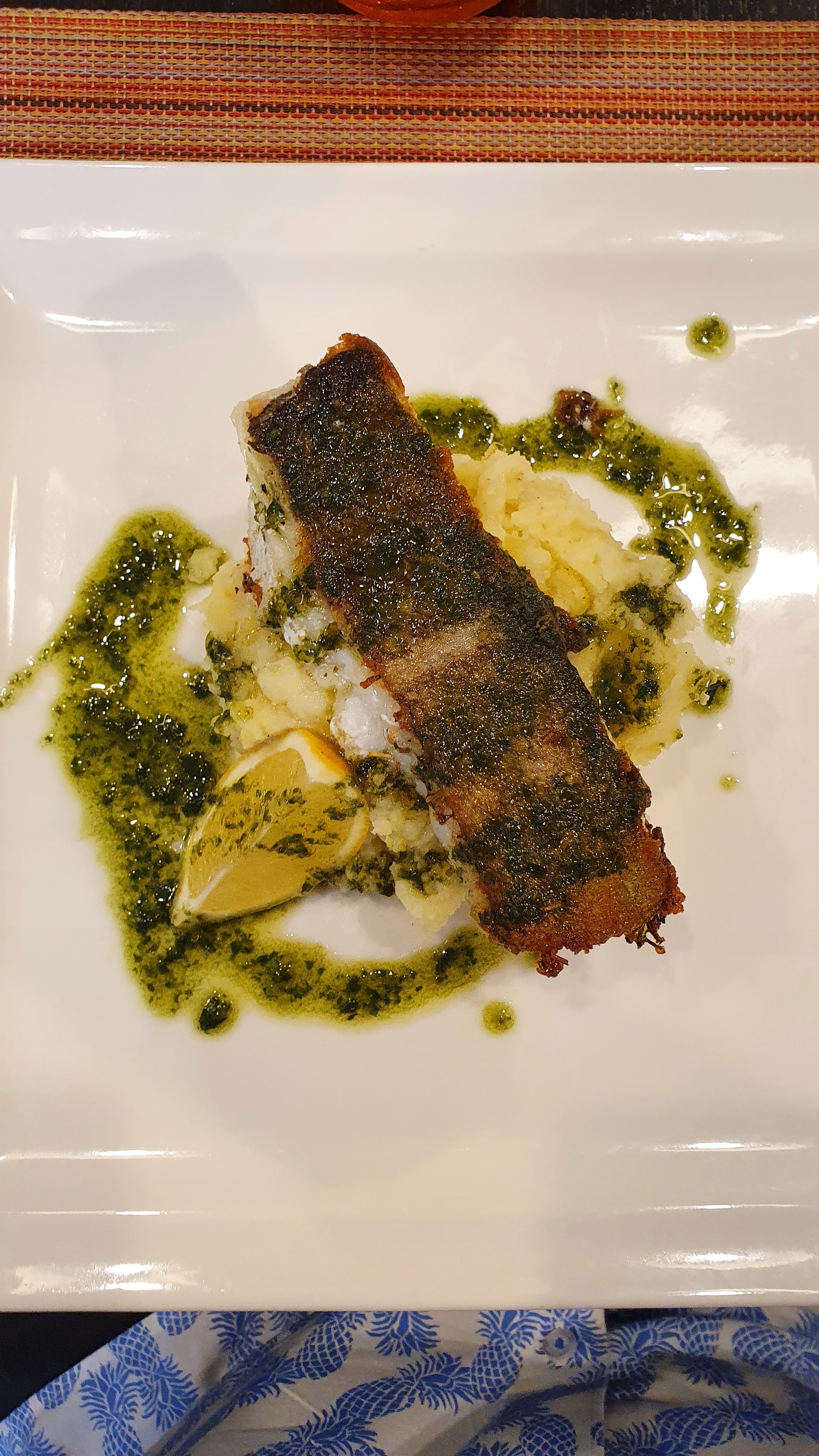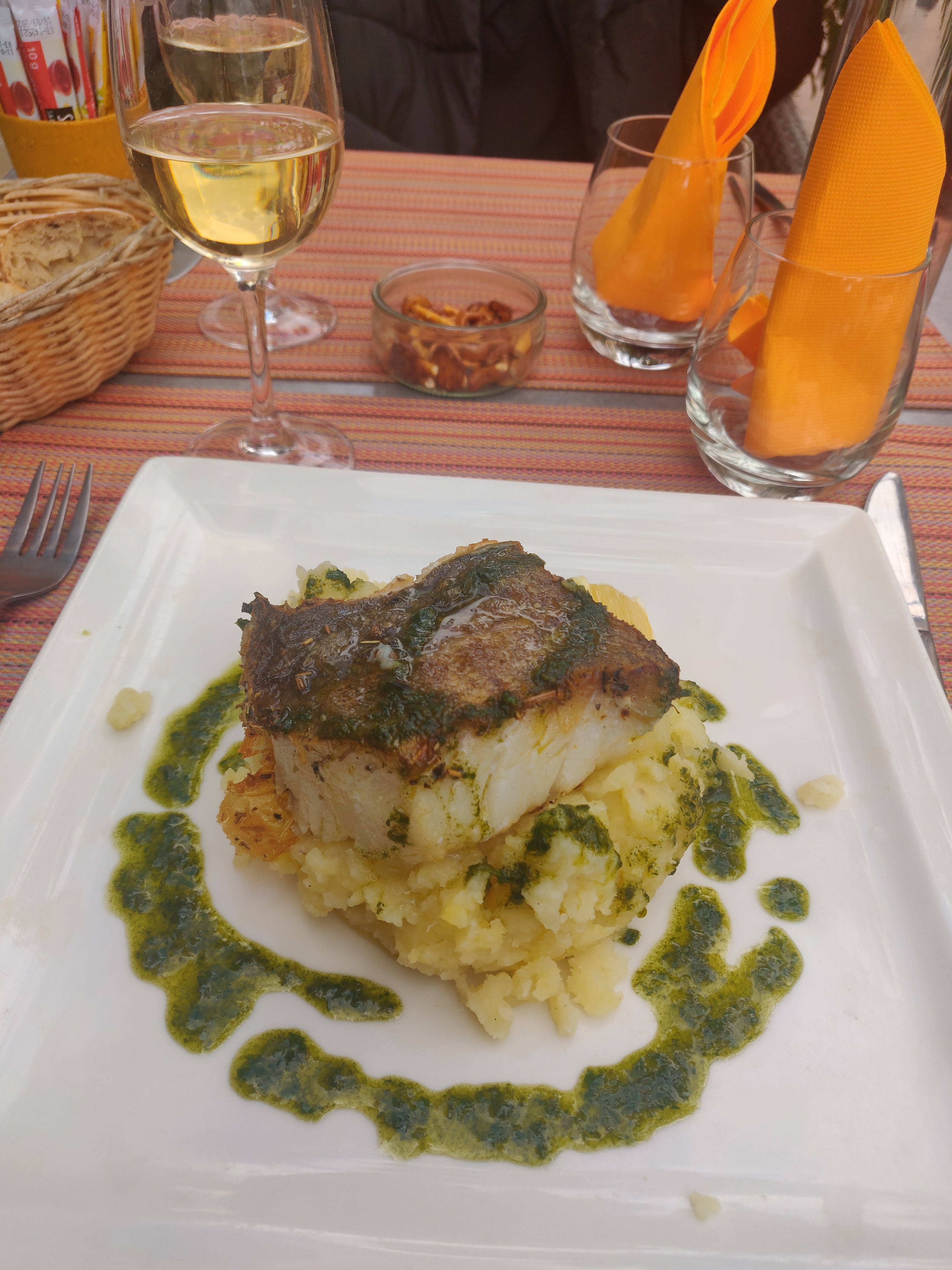 Cabillaud avec purée de pommes de terre. C'était une nourriture super légère et délicieuse