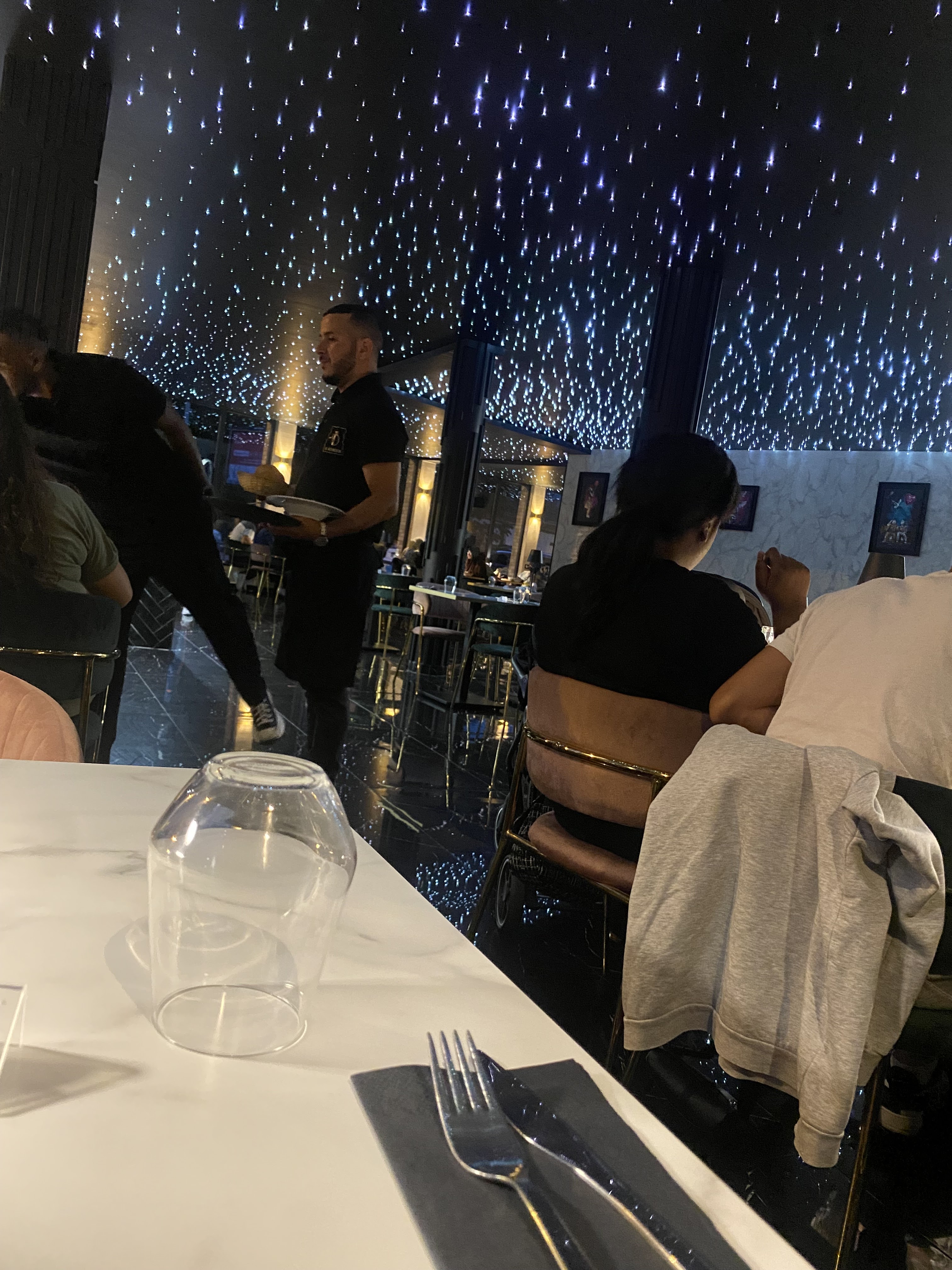 Je tenais particulièrement à mettre un commentaire pour ce restaurant qui vaut le détour. Repas délicieux, service assez rapide avec une belle présentation des plats. De plus, l'endroit est chic avec le plafond étoilé qui rajoute une touche classe et moderne. Le personnel est professionnel tout en restant accueillant et chaleureux. Nous y retournerons à coup sûr.