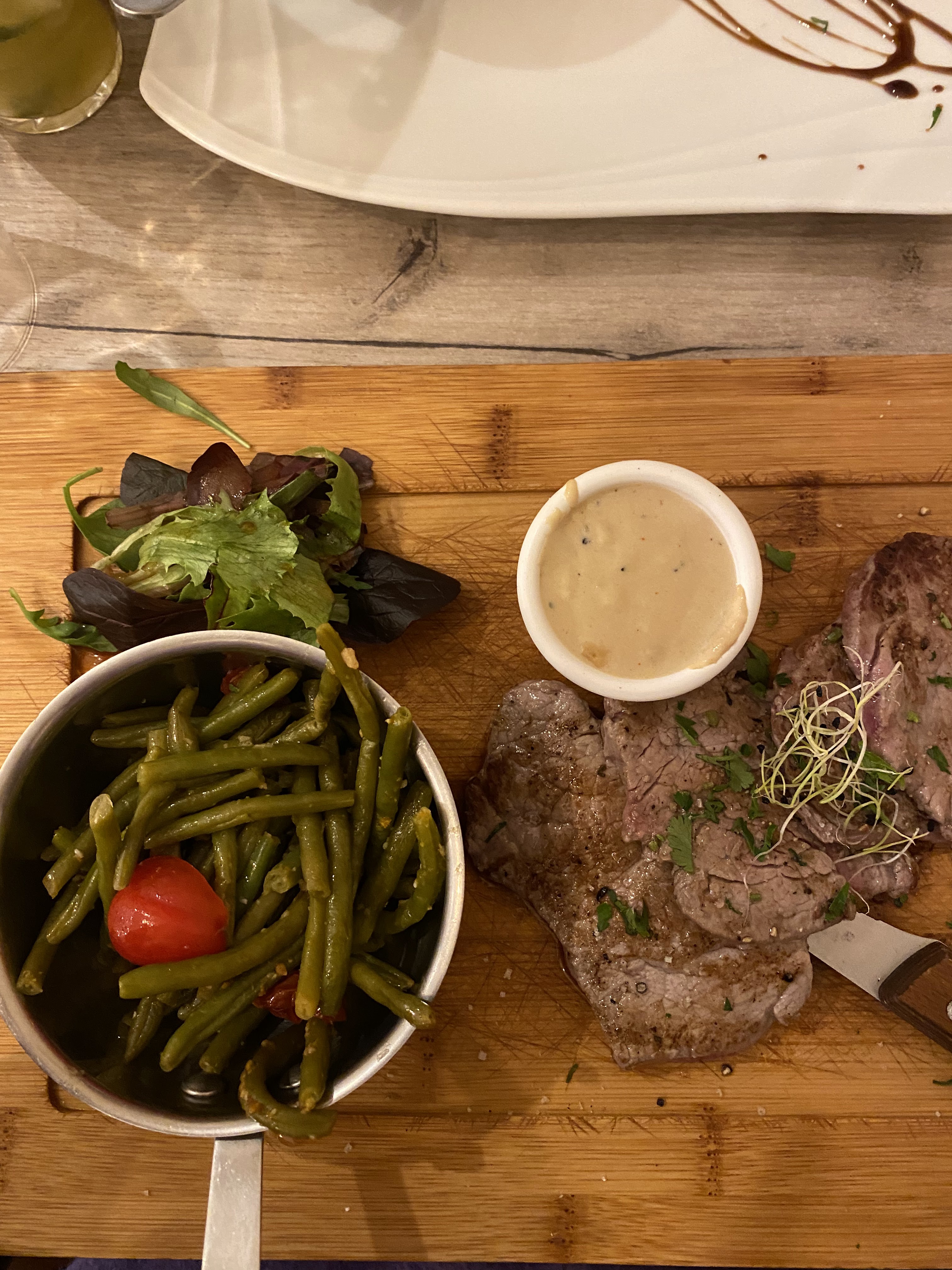 Gastronomie à la Française comme j'aime et Halal. Entrée carpaccio coupé très fin, salade délicieuse et je parle pas de l'entrecôte, que je coupe sans forcer.... Enfin un resto Halal à la hauteur, avec des produits de bonne qualité