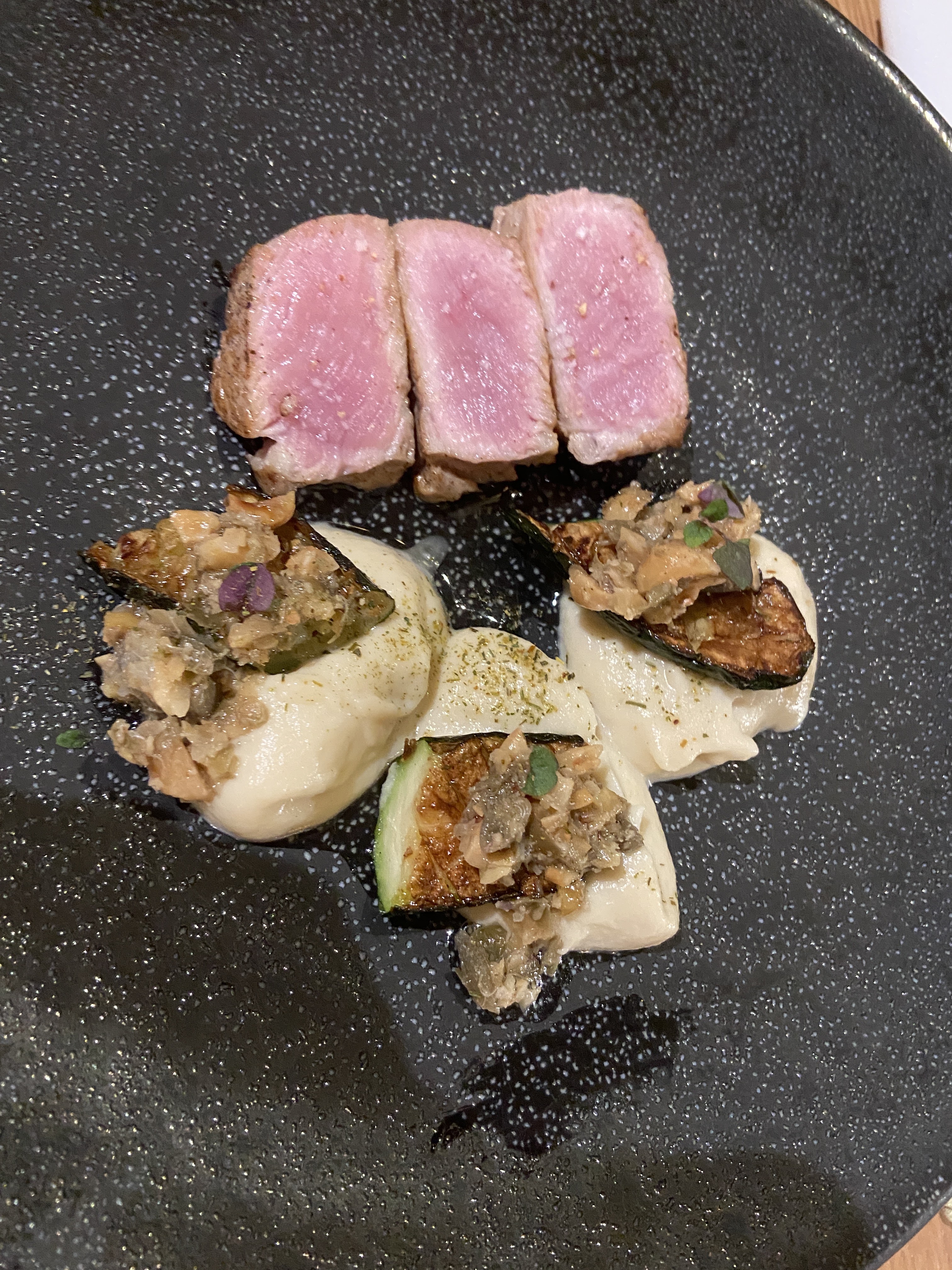 Le plat d'entrée était bonne mais le quantité était pour déguster. Pour le plat principal j'ai payé un supplément parsque le choix initial de menu n'étais pas à mon goût. Le bœuf était assez dure. Le choix de menu avec 3 plats (vegetarian, Poisson, ou, cochons) ne correspondez pas à mes attentes.