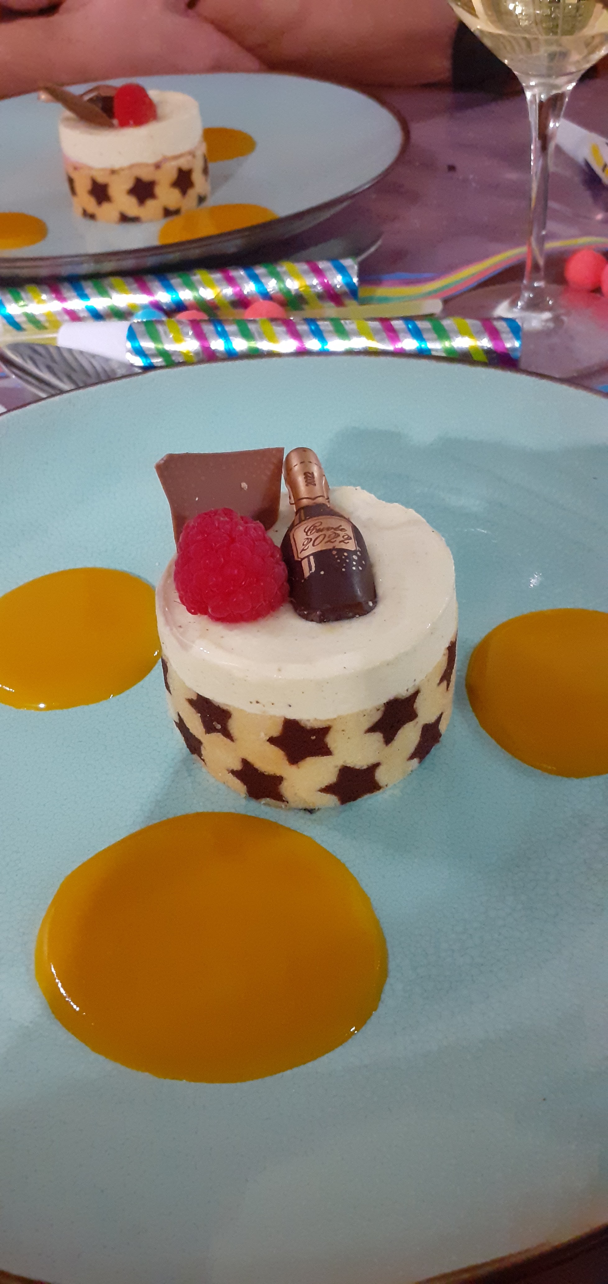 Nous avons dîné avec ma compagne le soir du réveillon du nouvel an. Une très belle salle; dans le caveau : un cadre chaleureux avec une belle ambiance et pierre aux murs Nous avons pris un apéritif maison sur les conseils de la serveuse, très bon Puis menu unique du réveillon : - foie gras en entrée, très bon et bien présenté - noix de St-Jacques et chorizo, une très belle association qui change de l’ordinaire - chapon et morilles - assiettes de fromages - tarte noix, caramel et chocolat, pour bien finir le repas sur une belle touche sucrée Rien à redire, très bon service et professionnel malgré l’affluence Merci à toute l’équipe et clin d’œil au chef cuisinier avec qui nous avons bien discuté à la fin du repas Belle découverte, nous reviendrons dans l’établissement avec plaisir