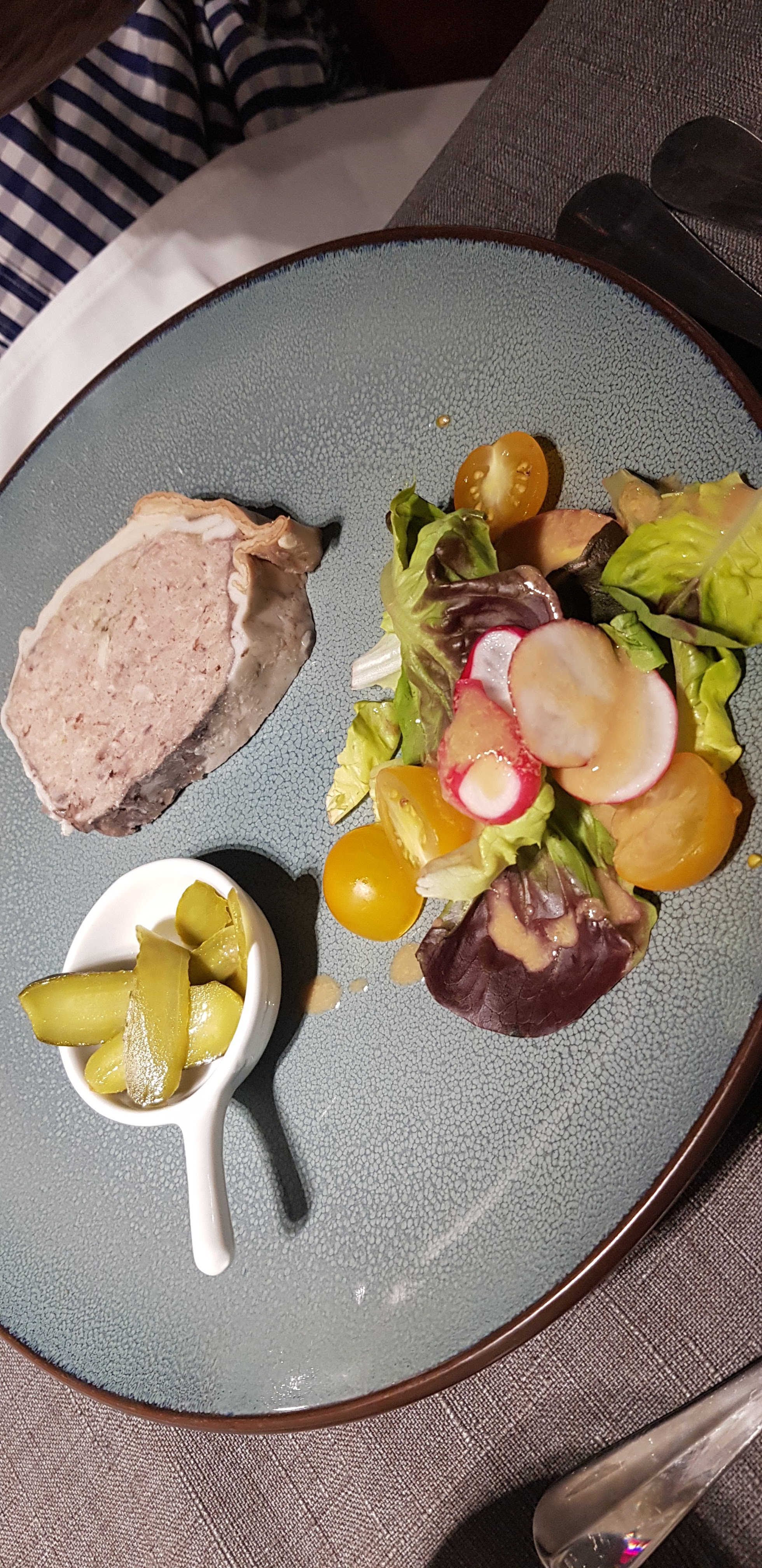 C’était parfait, je recommande. J’ai pris un Menu à 25€ : Jambon persillé Confit de canard gratin dauphinois Tarte citron meringuée
