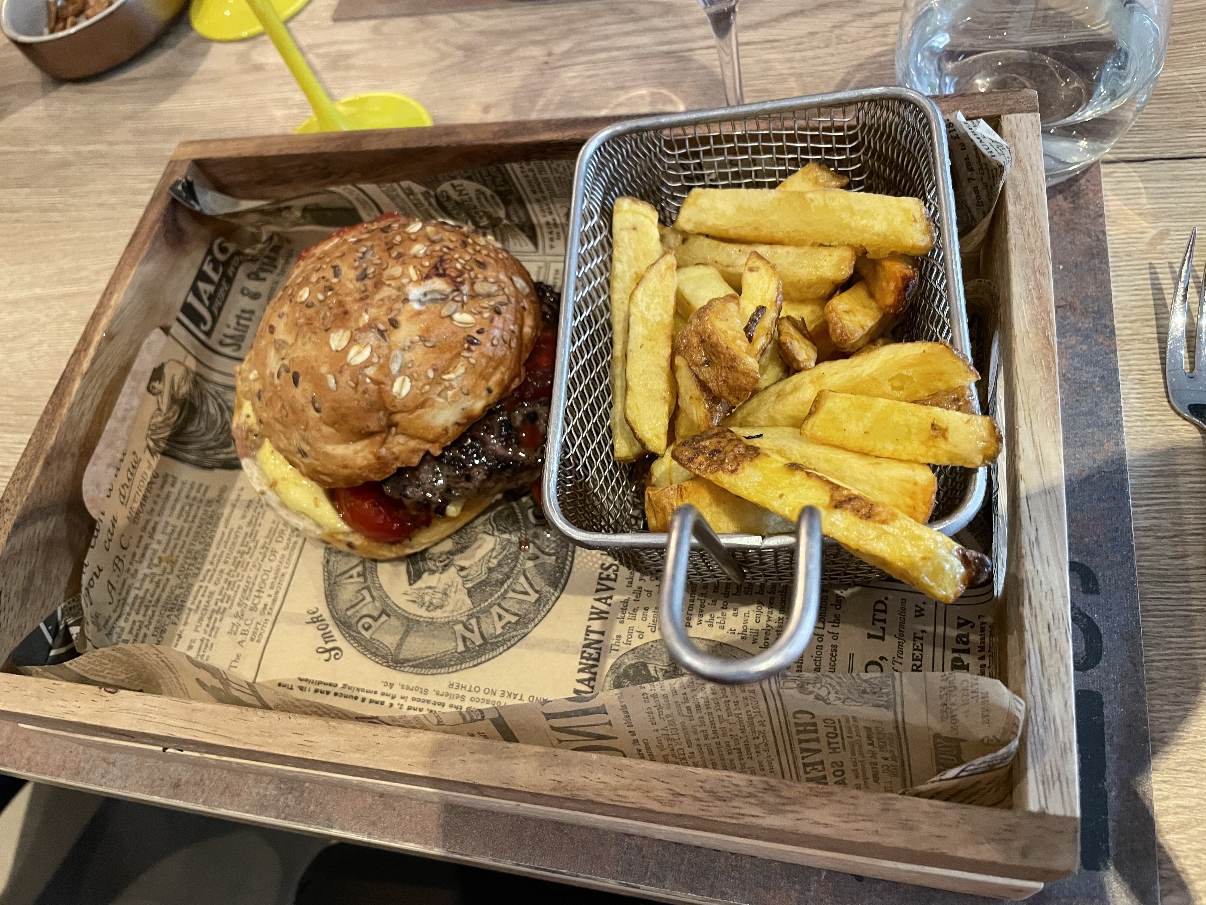 Accueil très sympathique, un hamburger canard ( cuit rosé parfait) avec foie gras un régal et presque trop copieux. Je recommande vivement pour un prix qui correspond à la qualité.
