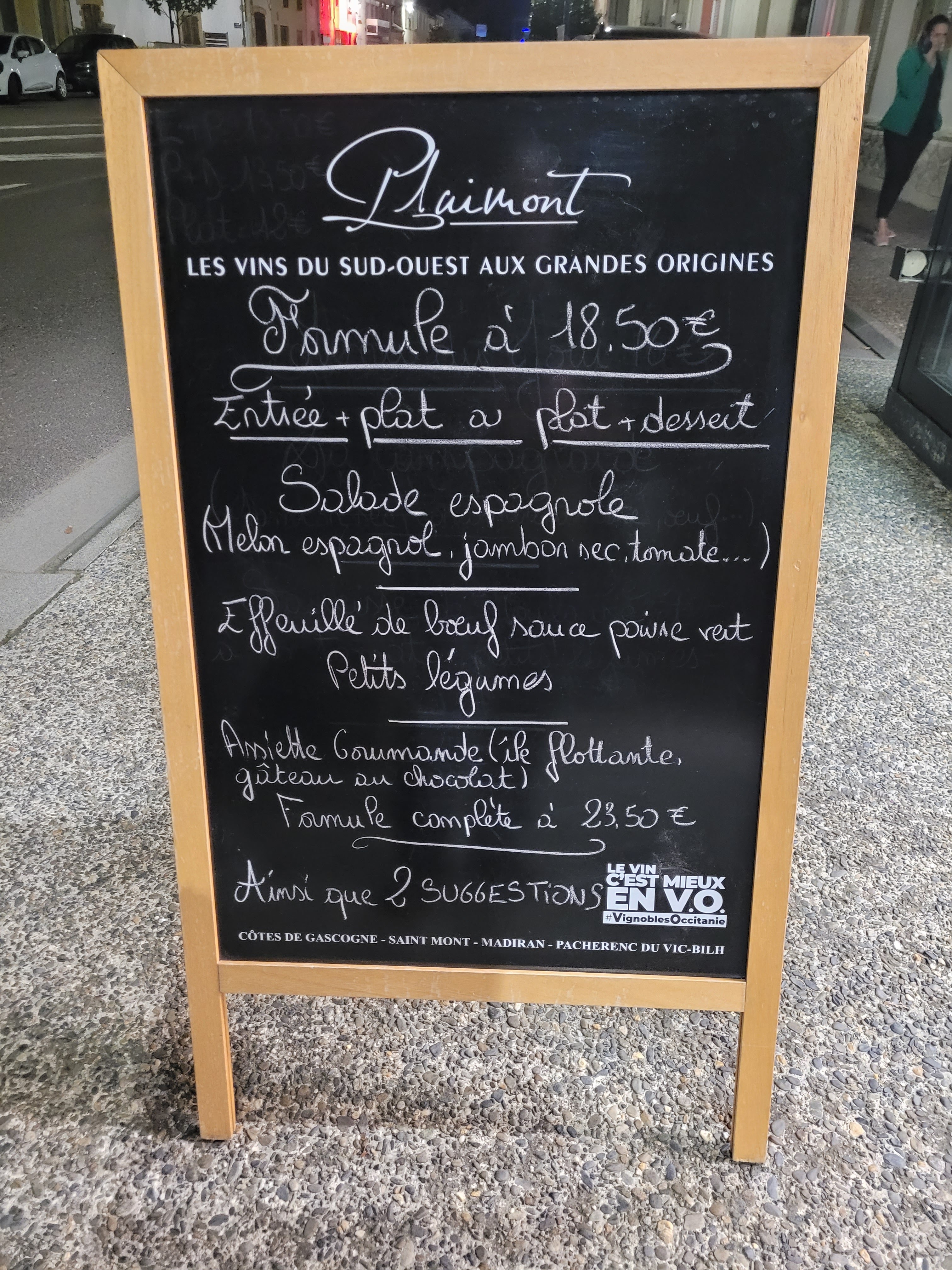 Patron sympa, restaurant agréable, avec un bon menu complet à 23,50€ ce soir. Bien cuisiné, recherché, juste le gâteau au chocolat un peu trop cuit à mon goût... Vous pouvez y aller sans problème.