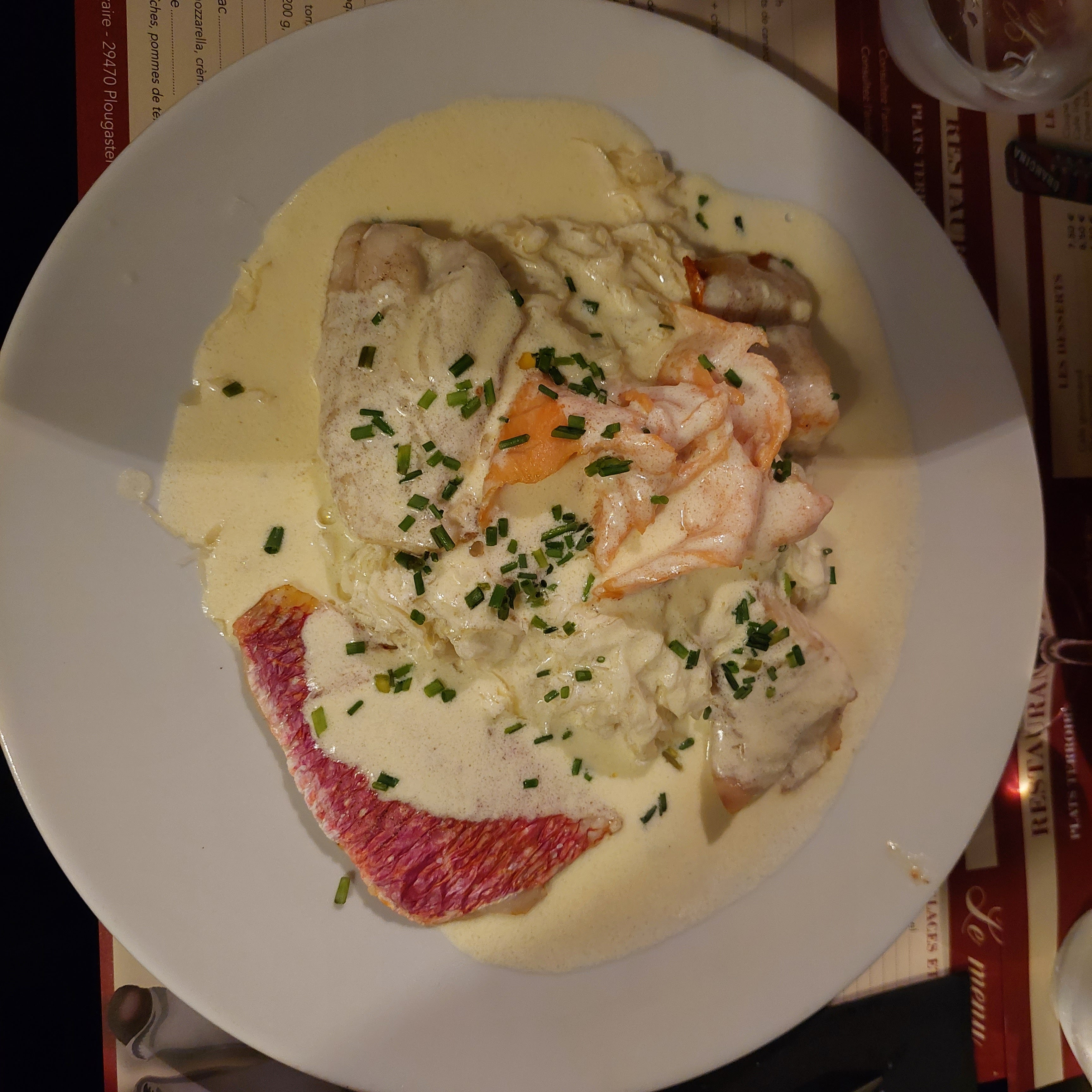 Excellente adresse à PLOUGASTEL. Le chef, ancien de la brigade Chevaliers de l Auberlac ch , adresse très connue de PLOUGASTEL--ferme pour retraite- met ses services à notre disposition.. des fois, c est un peu long mais le jeu en vaut la chandelle : on se regale🤗🤗🤗