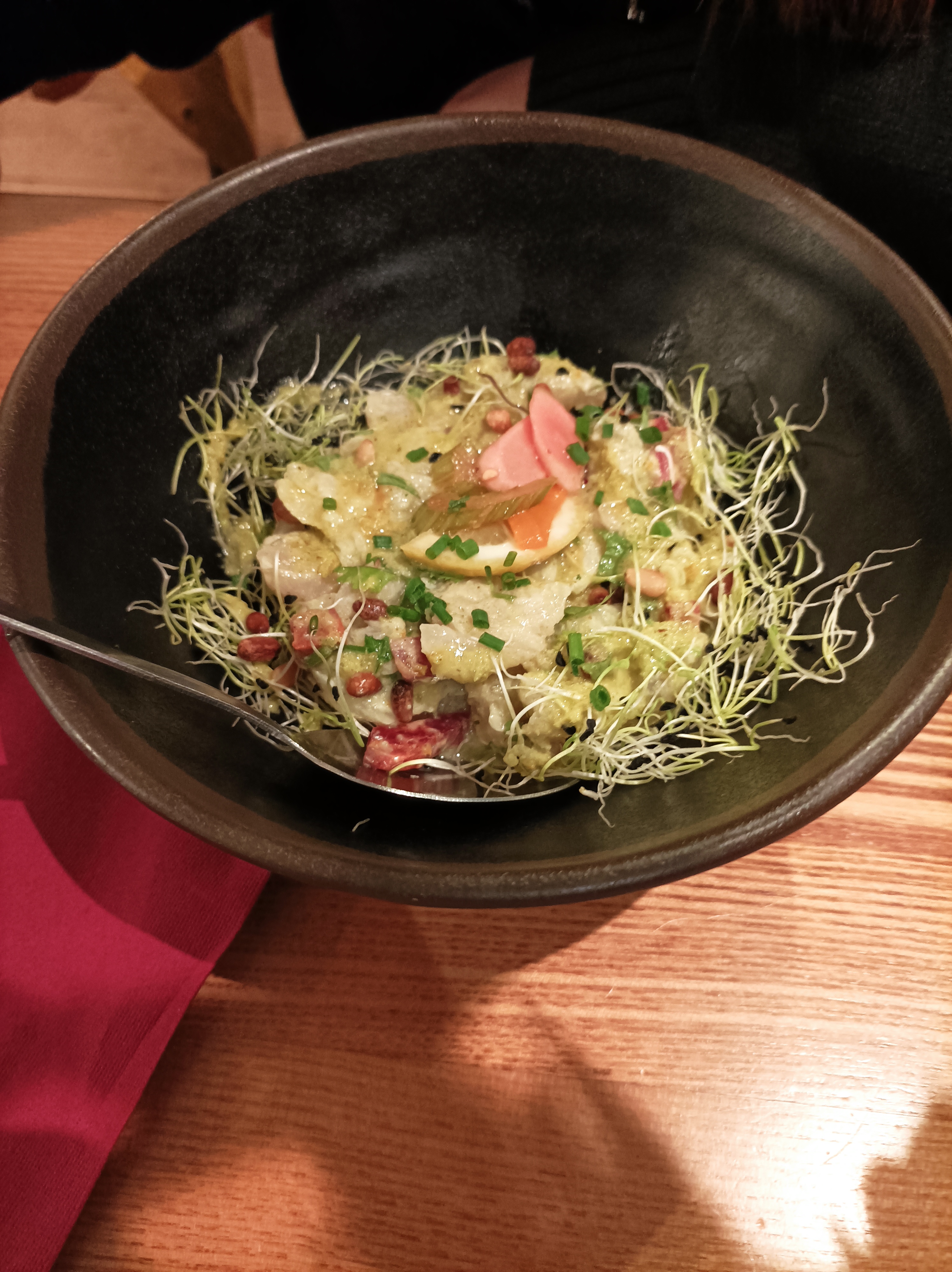 Le cadre est très chaleureux, l'accueil et le service aussi. Quant aux plats, j'ai choisi un tataki de boeuf qui était très parfumé.