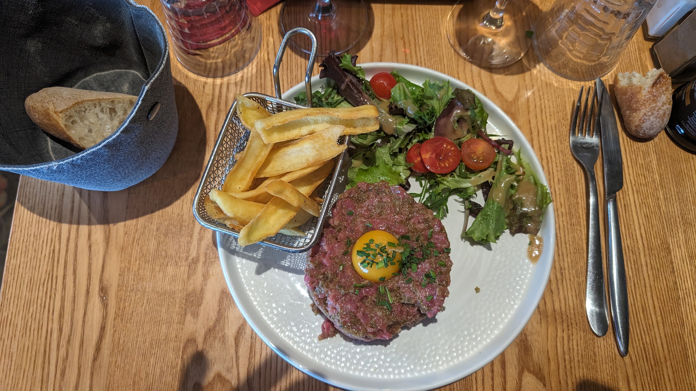 Tout démarre sur une terrasse à hauteur de pot d’échappement!! Un tartare chaud et en bouillie et presque que déjà mâché. Et pour le dessert, plus grand chose sur la carte à proposer pourtant avec une carte où il propose de différents dessert!!! Les serveurs arrivent à plusieurs reprise pour dire on en a plus et ainsi de suite pendant 30 minutes. Vive l’attente.