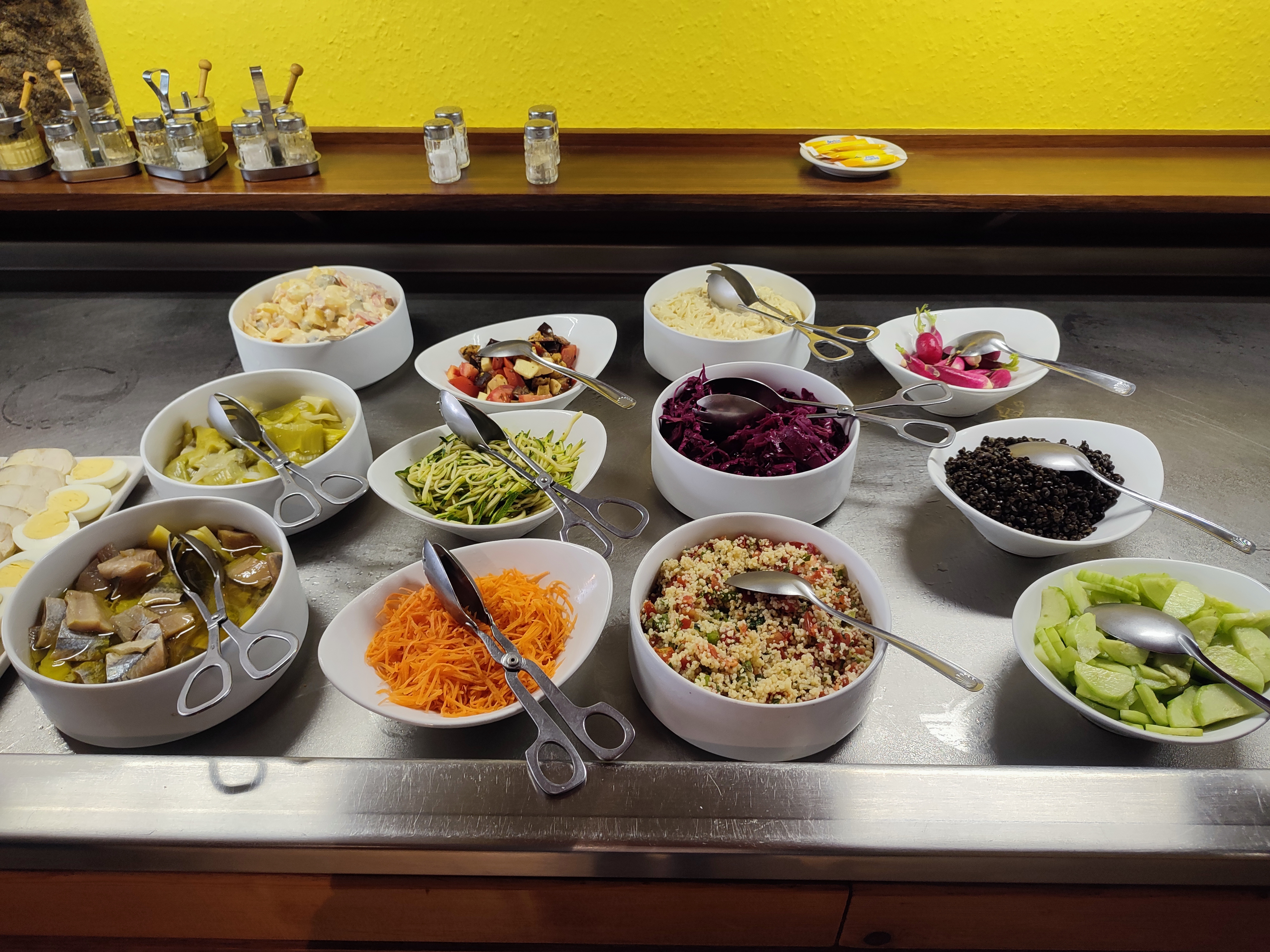 Un buffet pour l'entrée et le dessert est une excellente idée. Chacun peut manger des produits frais à sa faim. Le plat principal est très bien cuisiné, frais et raffiné. Les tarifs sont vraiment abordable !
