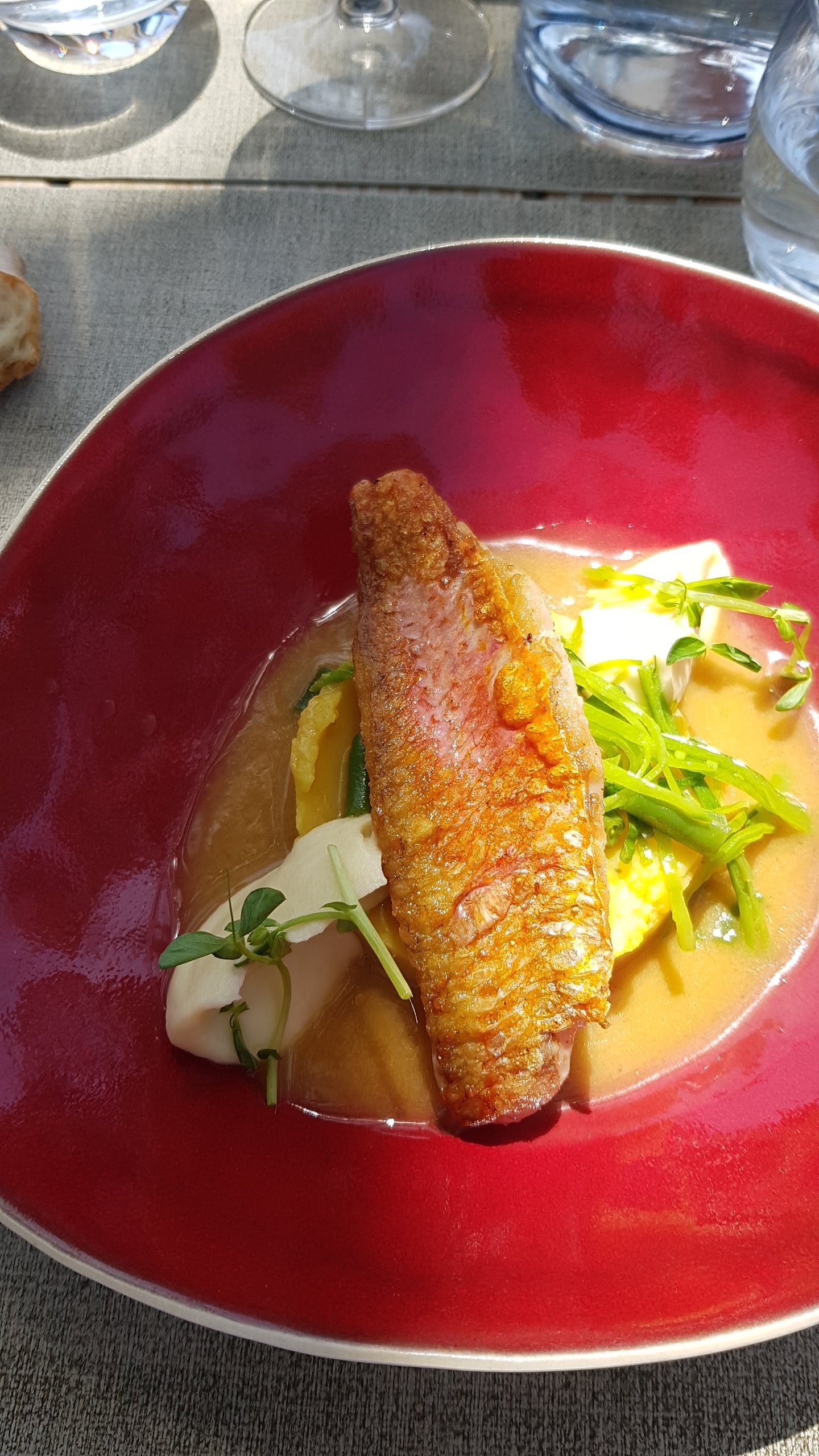Plutôt décevant La qualité n’est pas au rendez-vous malheureusement Des fleurs de courgettes farcies avec une purée de saint Jacques trop épicée 3 gambas bien maigres Une lotte trop cuite et caoutchouteuse, trop épicée également. Un turbo perdu par ses accompagnements et sa sauce Des desserts trop sucrés Une belle terrasse, une équipe fournie, de belles assiettes, des produits sans doute bons, mais côté cuisine c’est raté, cuisson, goût, on n’y est clairement pas. Et quand on annonce de beaux prix on attend la qualité. 190 euros pour 2 entrées+plats+dessert et une bouteille de vin, la déception est grande et les étoiles sont loins