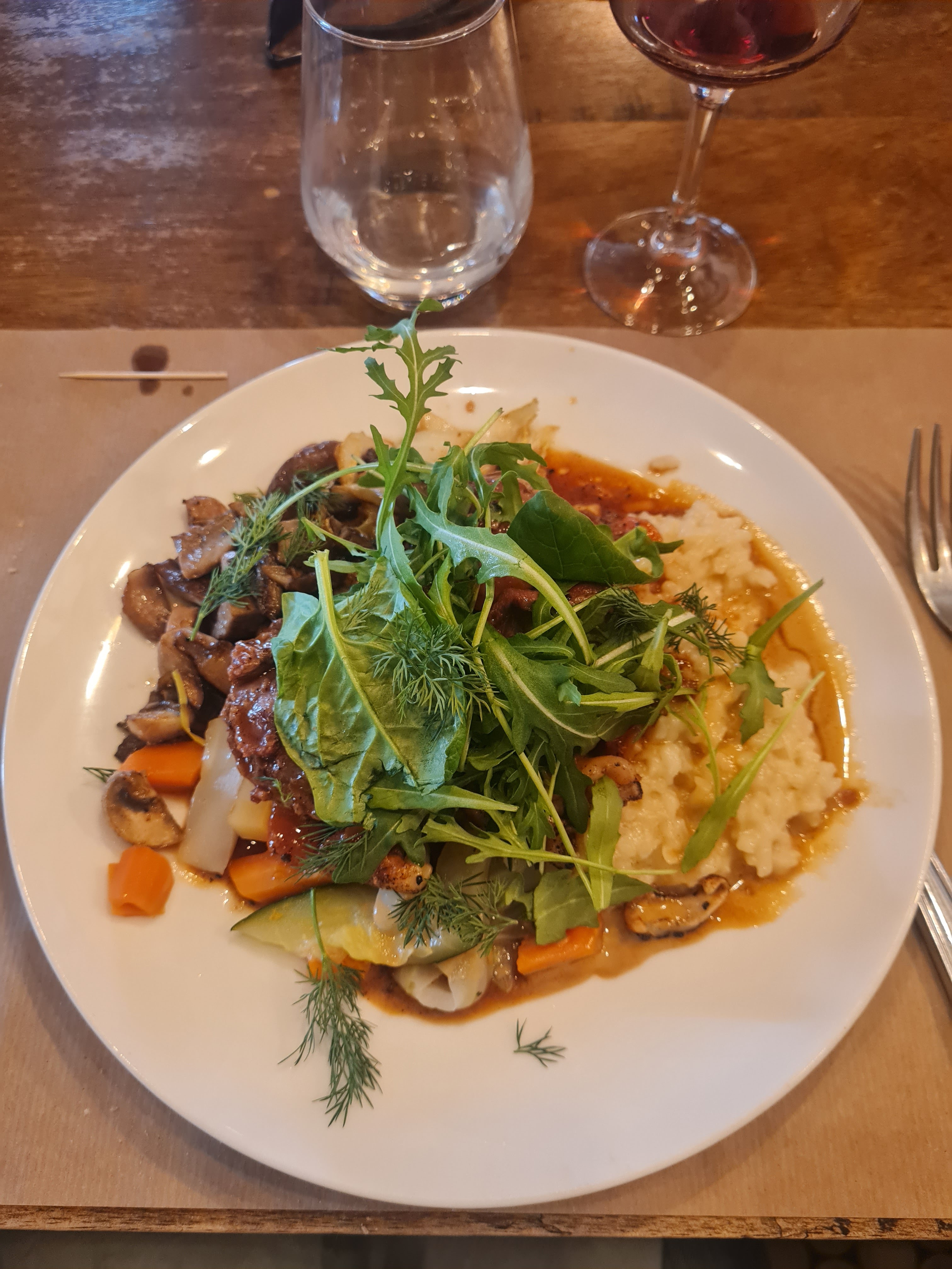 Rien à dire sur la nourriture qui était excellente et copieuse (mais sans surprise). En revanche, service très lent, avec une heure d'attente pour l'entrée puis une demi heure à nouveau pour le plat. Allez y avec un bon bouquin ou des amis bavards...
