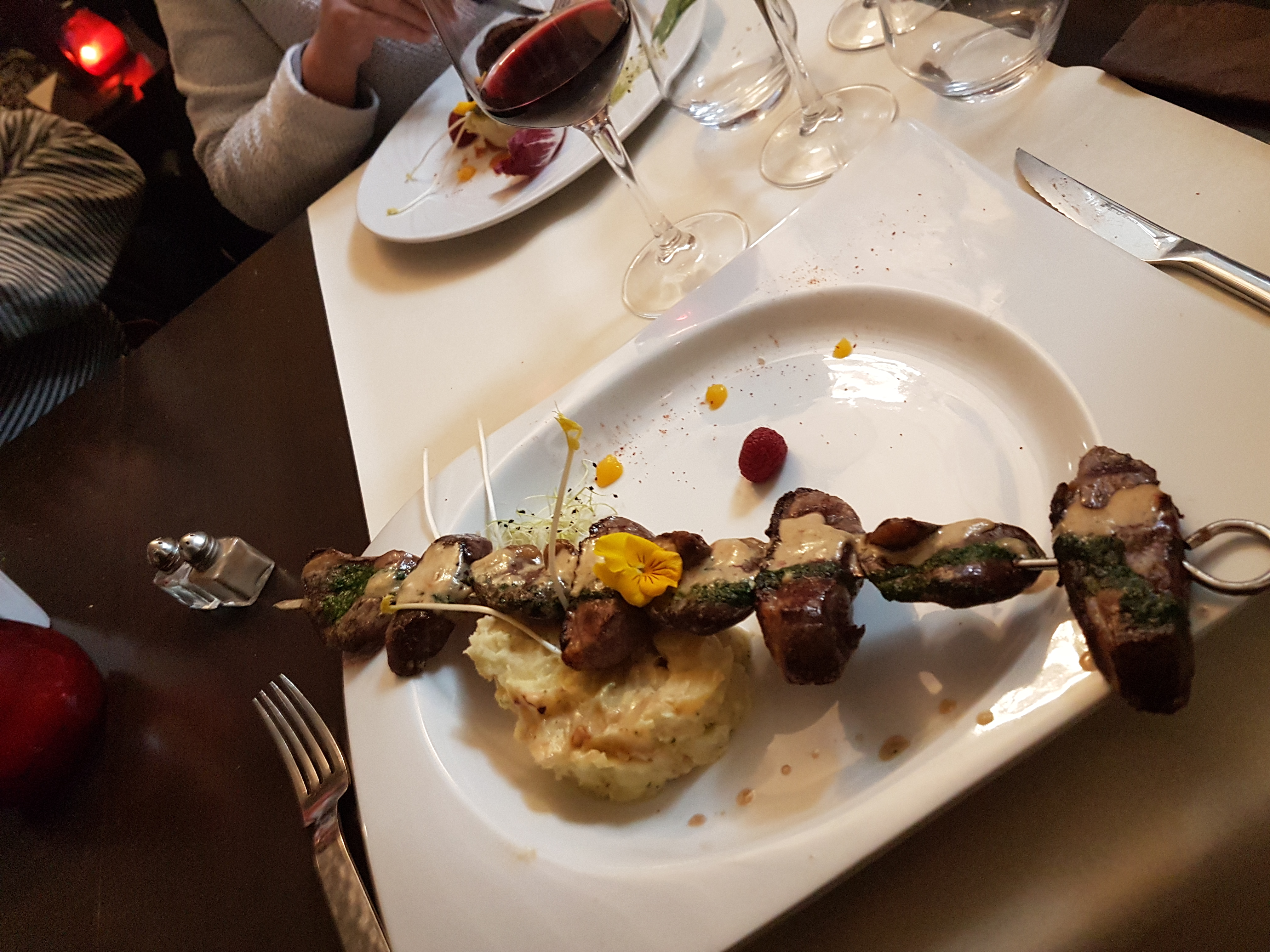 Repas de la Saint sylvestre tellement parfait... la salle de repas est extrêmement belle, le repas était simplement excellent ! L'esthétique était aussi beau que le plat était bon ! Et qu'est ce que c'était excellent. Le personnel était si agréable... un gros plus ! Donc rien à redire, juste parfait. Découverte magnifique !