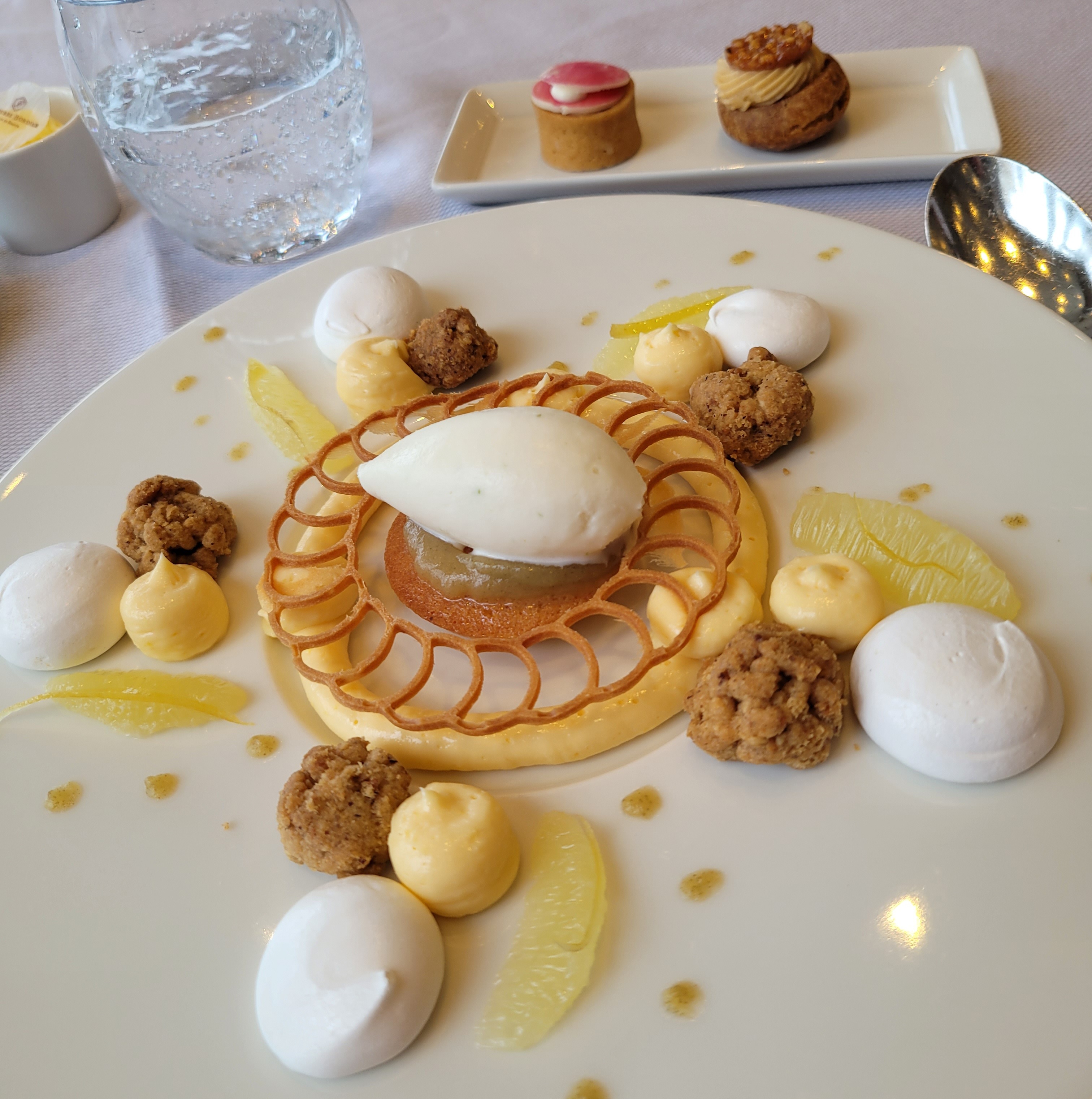Excellent dîner gastronomique et copieux (menu émeraude : mignardise salée, entrée, plat, fromage, mignardises sucrées, dessert). Magnifique vue. Personnel très accueillant. Très belle expérience.