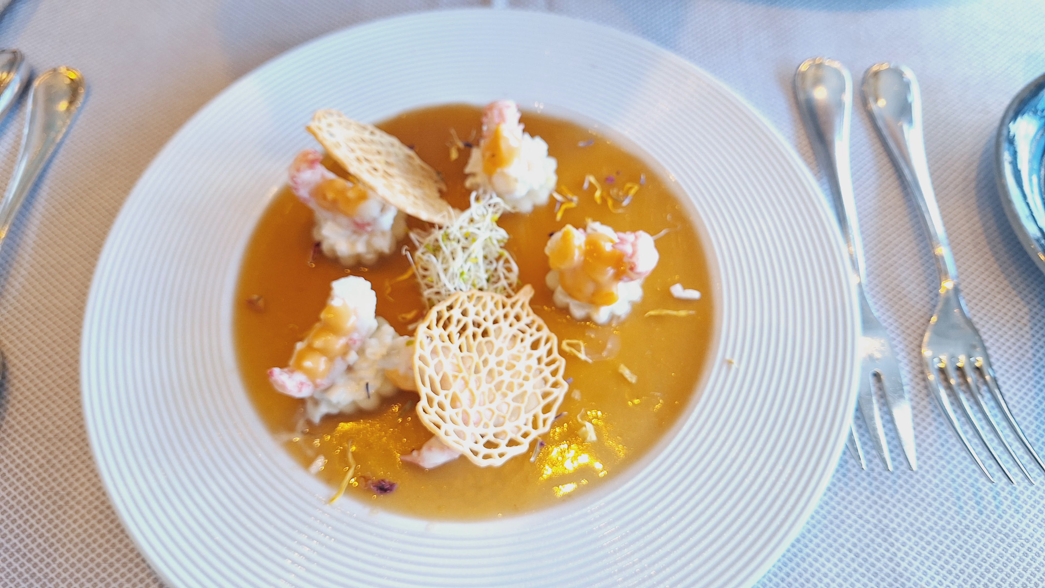 Je mets 3 étoiles car j’ai été très très déçue par le dessert « crémeux au chocolat » qui n’est pas à la hauteur de ce restaurant. (et qui m’avait été conseillé lors de la commande) Par ailleurs, mon époux et moi-même avons trouvé des fragments de carapace de crabe dans notre mise en bouche qui malgré tout, était très bonne.
