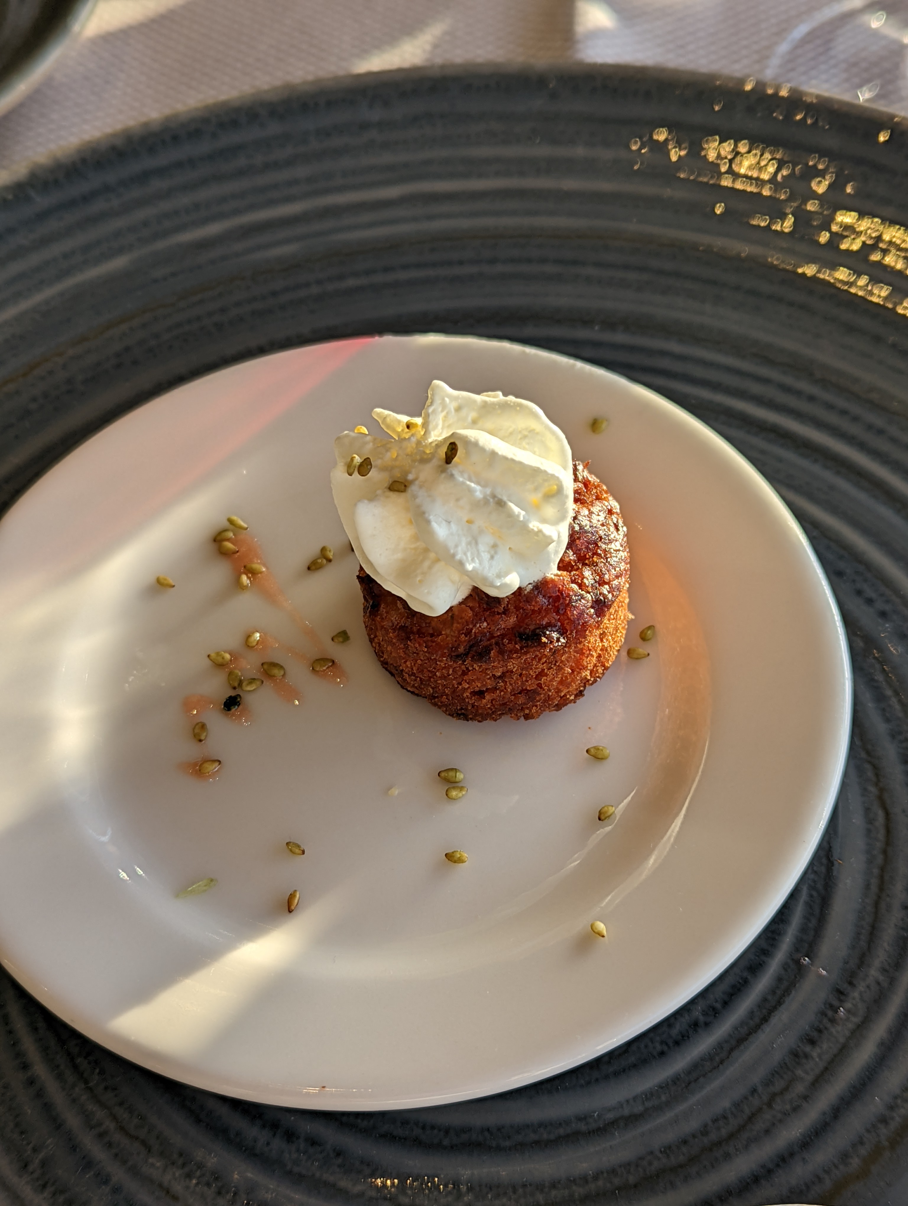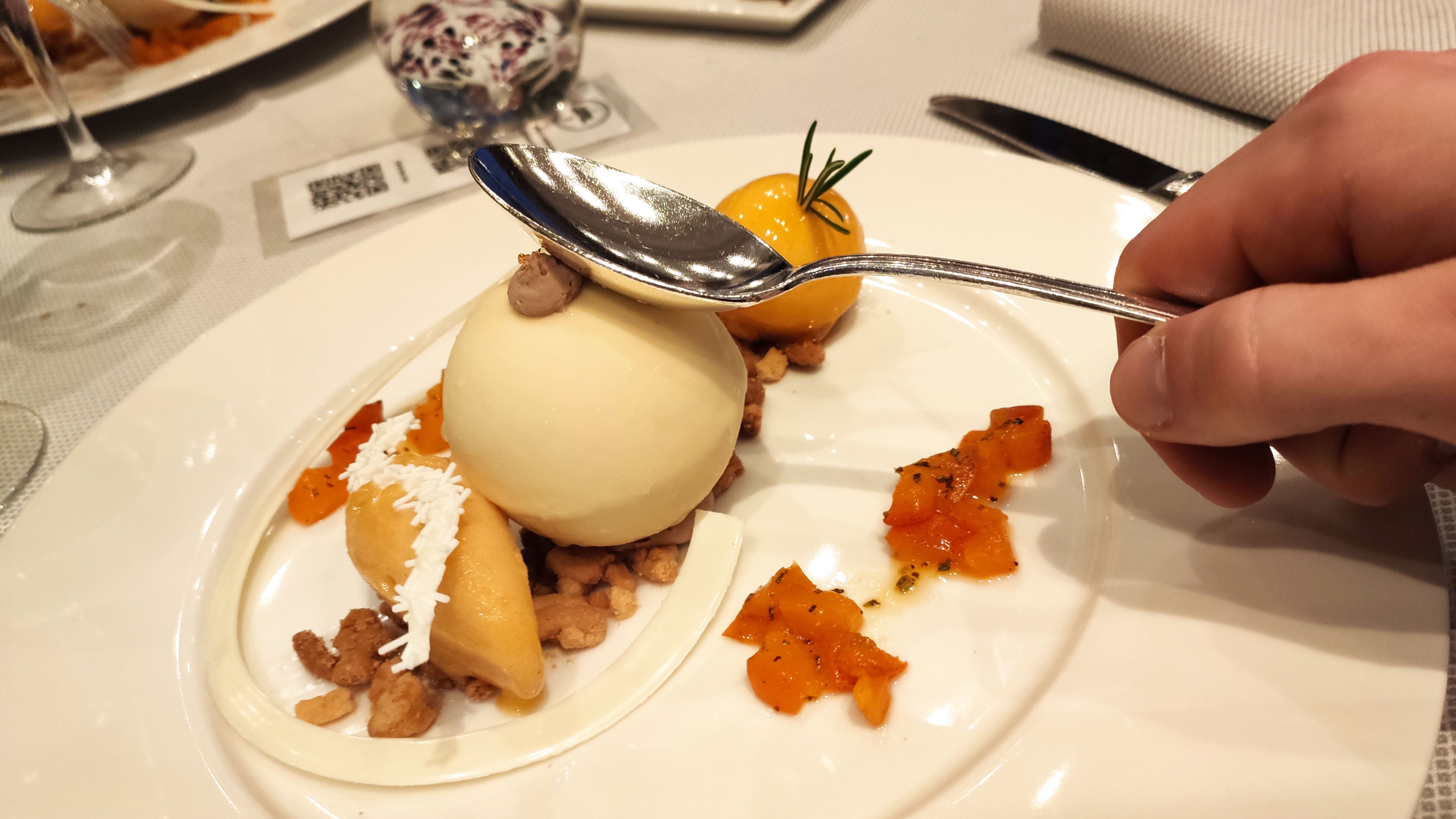 Food: Great amuse-bouche, great starters, good turbot and saint-pierre (the fish were cooked perfectly) and great desserts. Nevertheless, the risotto was poorly seasoned, it looked like a bland and tasteless baby rice congee, and the other one looked and tasted like a mashed broccoli puree. Cf photos. Service: great service from the maitre d'hotel and the sommelier (even if we ordered water), but HORRENDOUS SERVICE from the waiter OLIVIER. En francais, service excellent de la part de tous sauf du serveur Olivier qui devrait revoir ses manieres et la maniere dont il fait ses remarques sans compter son manque d'articulation. Si nous venons au Cap Horn et que le menu nous attire, laissez-nous commander un dessert en plus et laissez-nous gouter les fromages au lieu d'insinuer que nous commandons trop. Par ailleurs, je ne sais pas si c'est la moustache mais nous n'avons pas compris l'appelation des fromages et lorsque vous proposez des fromages, nous aurions pu nous passer de votre remarque disant qu'en general les gens choisissent deux ou trois fromages et c'est pour cela que votre assiette ne ressemble a rien. Quel type de service est-ce pour un restaurant dans un hotel 5 etoiles. Enfin, quid de la presentation de la crepe soufflee et flambee? Le serveur Olivier est venu avec une jeune stagiaire et au lieu de nous presenter le dessert, il a donne un cours comme si nous etions dans un restaurant d'application et nous a completement ignore tout en denigrant le dessert et en enoncant le fait qu'en journee, de toute facon, on ne voit rien du flambage, et par ailleurs, donnait des coups de bras pour eteindre le flambage qui s'eteint de toute facon tout seul. In English, - As cheese is included in the prestige menu, we obviously wanted to try them but Olivier suggested us not to have it because we already ordered one extra dessert. I don't know if it's gluttony-shaming but his remarks were quite unpleasant. When he came with the cheese, besides his poor verbal skills, he told me that my plate did not fit and did not look good because people usually order a couple of cheese. He should have said so and I would have ordered less instead of making such a comment. Furthermore, when he arrived with the souffle and flambe crepe, he completely ignored us and instead gave a class to another waitress as if we were in an application restaurant. Overall a great experience and great service except for the mashed puree and the risotto and Olivier's nasty comments all along the dessert and cheese part.
