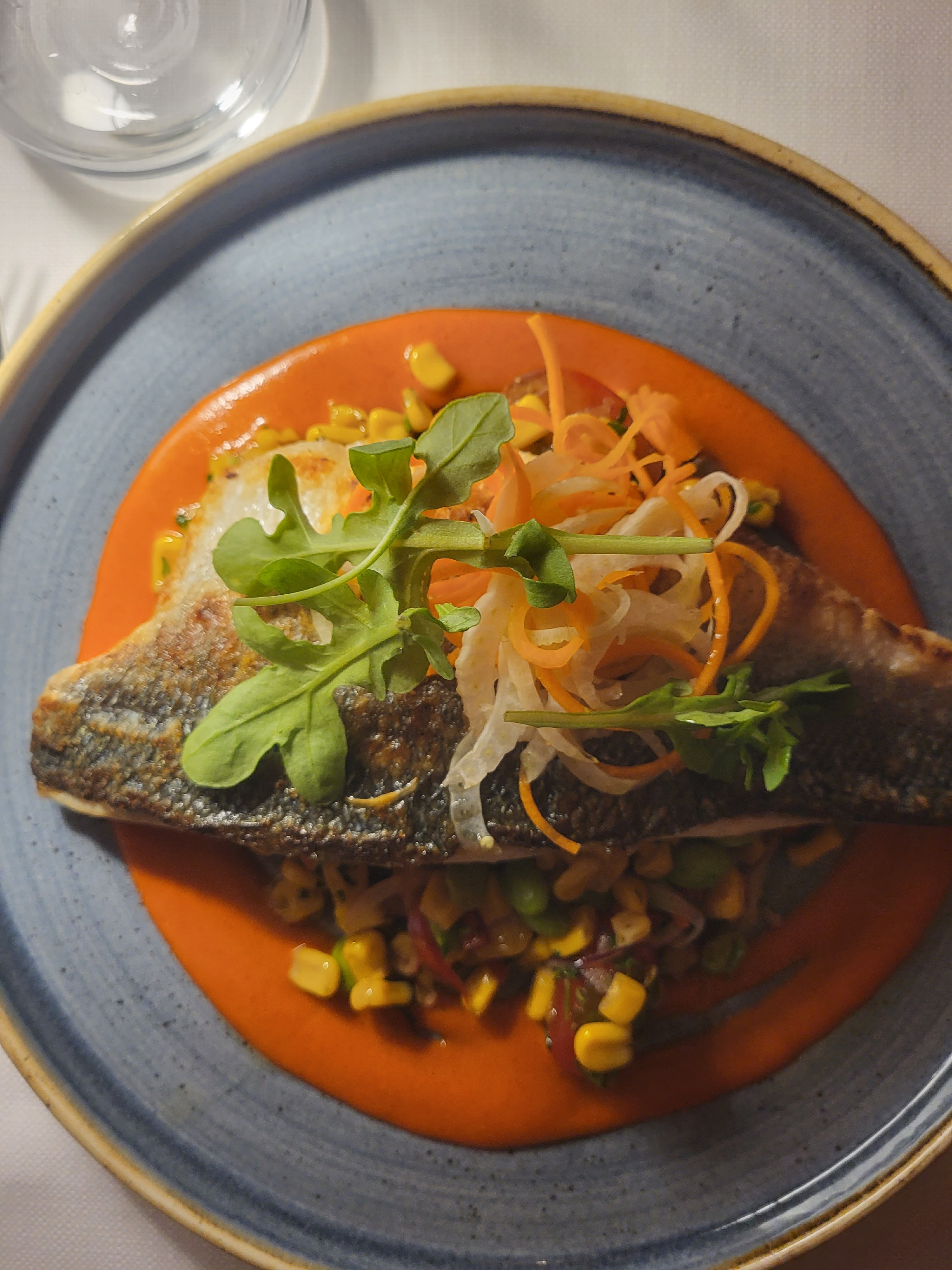 Notre guide nous a amenés ici pour un dîner de bienvenue et bien que nous ayons commandé dans le menu limité, la nourriture était fraîche et délicieuse. En particulier, la soupe aux fruits de mer et le bar étaient très bons ! Le sorbet était également très savoureux et rafraîchissant