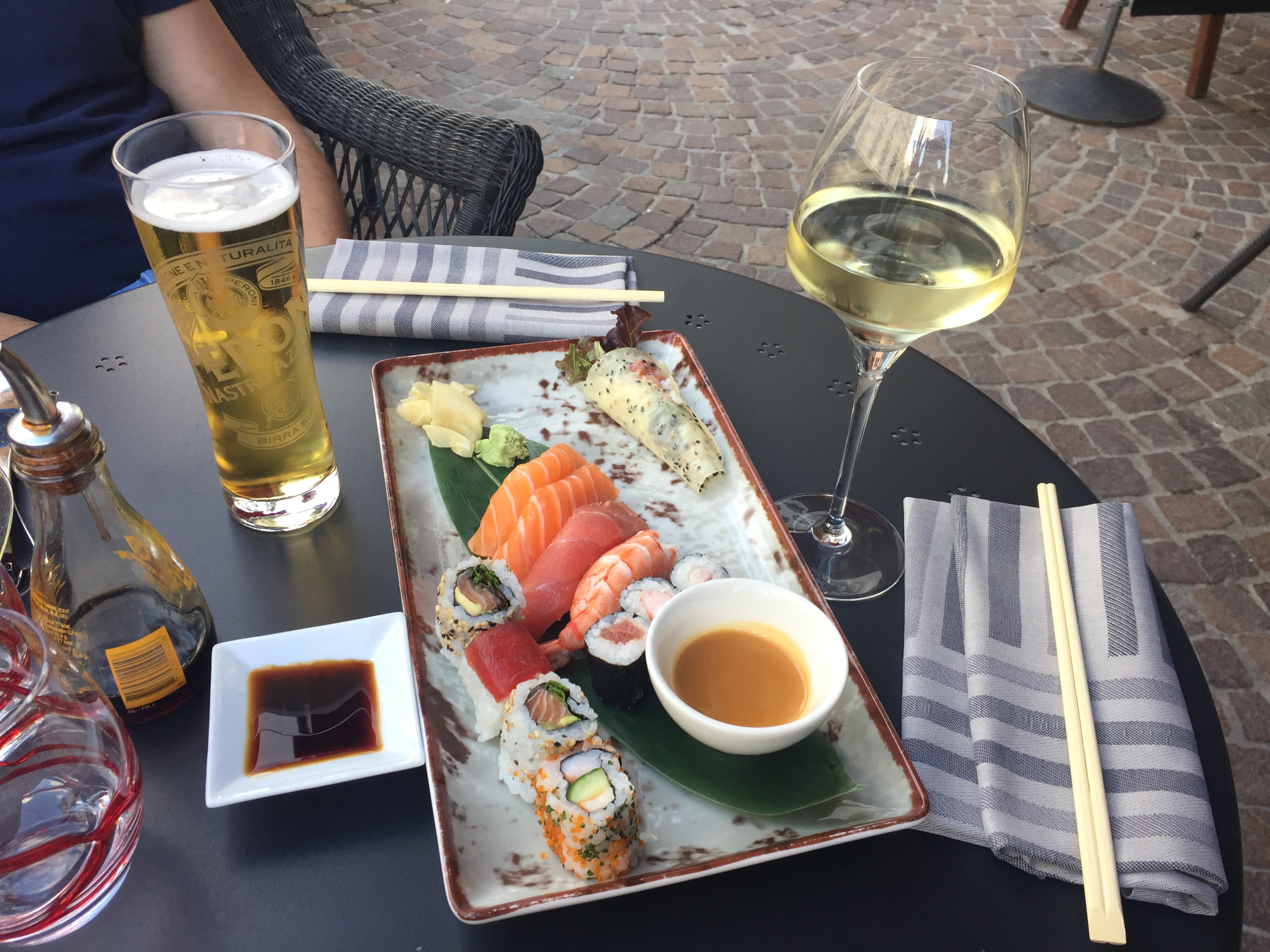 Très bel endroit, confortable, bon service, personnel sympathique, bons prix. Nous avons mangé des sushis et du vin mais sur une jolie petite terrasse !