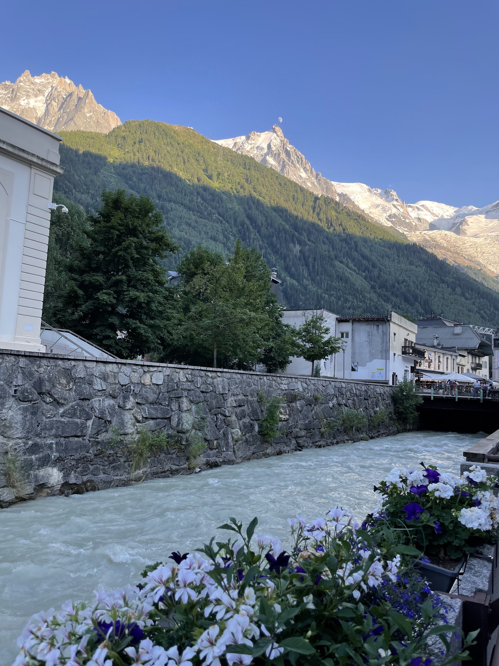 Excellent repas ce midi avec la vue sur le pic du Midi et le Mont Blanc le tout à côté de la rivière qui traverse Chamonix! Le serveur était tres sympa! Parfait