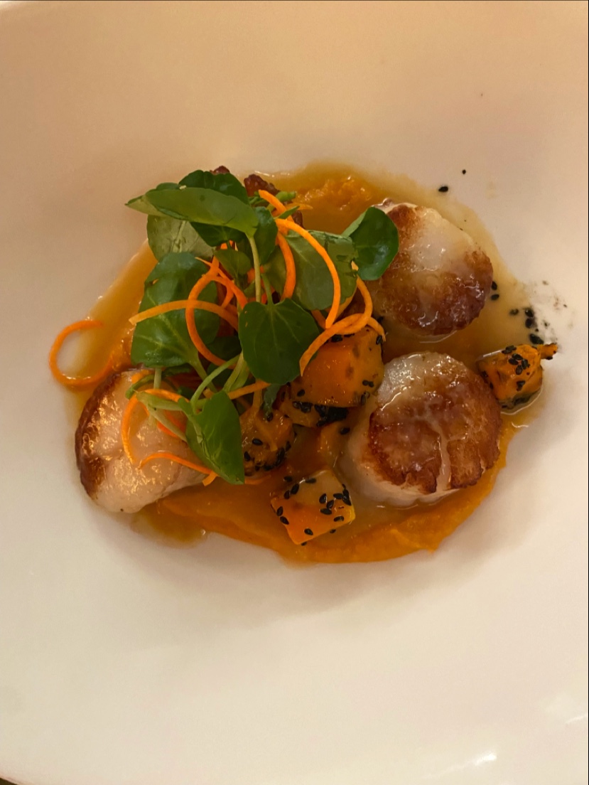 La première chose qui se présente à vos yeux est à quel point le restaurant et le pub de nuit en dessous sont chaleureux et bien conçus. Il y a plusieurs niveaux avec des sièges et l'espace à l'étage est très aéré. La nourriture est assez chère mais la qualité est à la hauteur du prix. Nous avons pris des huîtres, une soupe de poisson et des coquilles Saint-Jacques grillées. Ils nous ont proposé 2 accompagnements avec croûtons. Recommandé la réservation. Personnel très gentil, professionnel et attentif.