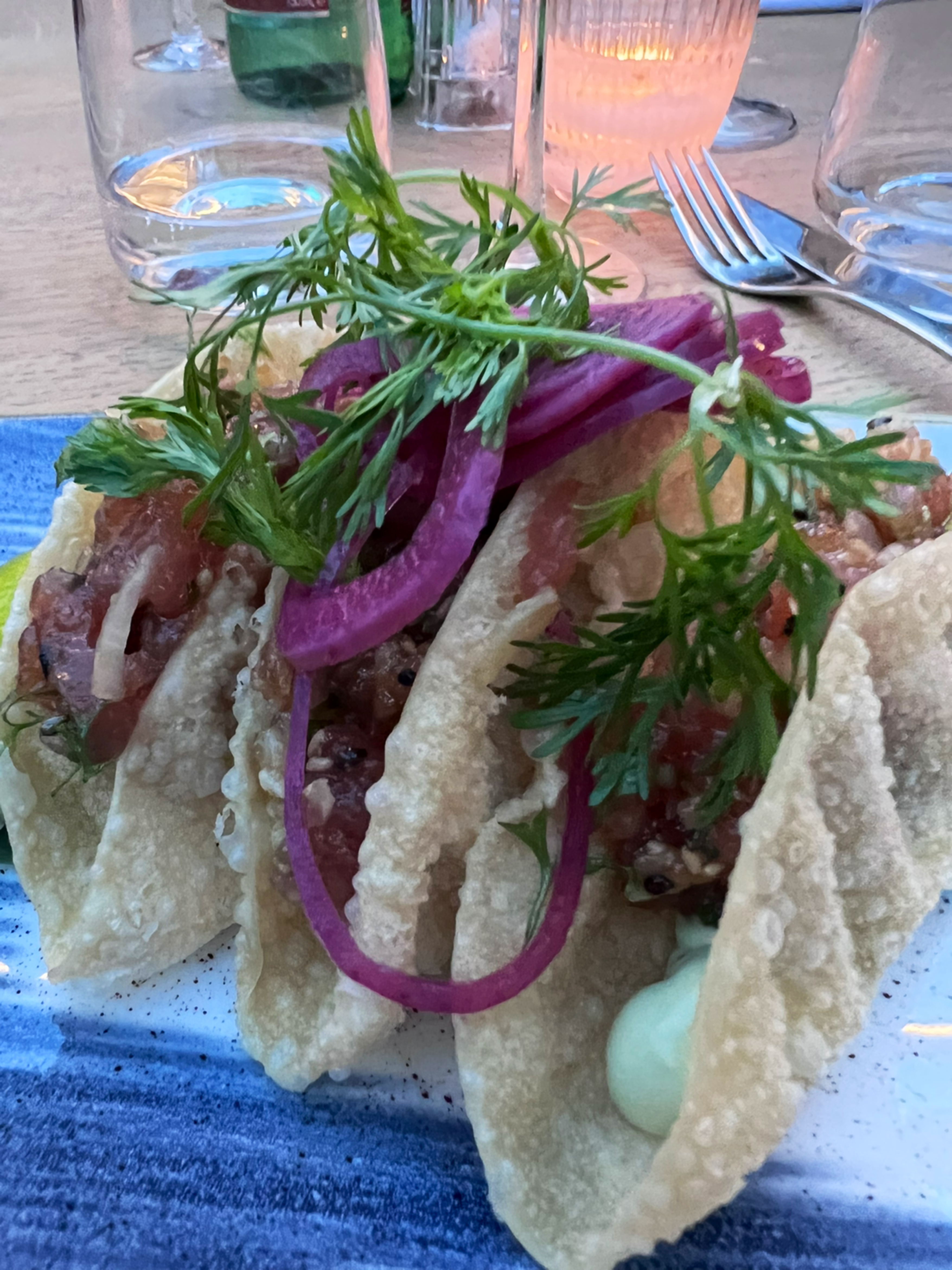 Super soirée dans une ambiance sympa. La nourriture était bonne. De délicieuses tostadas au thon étaient le point culminant. Service attentionné. Merveilleuse soirée.