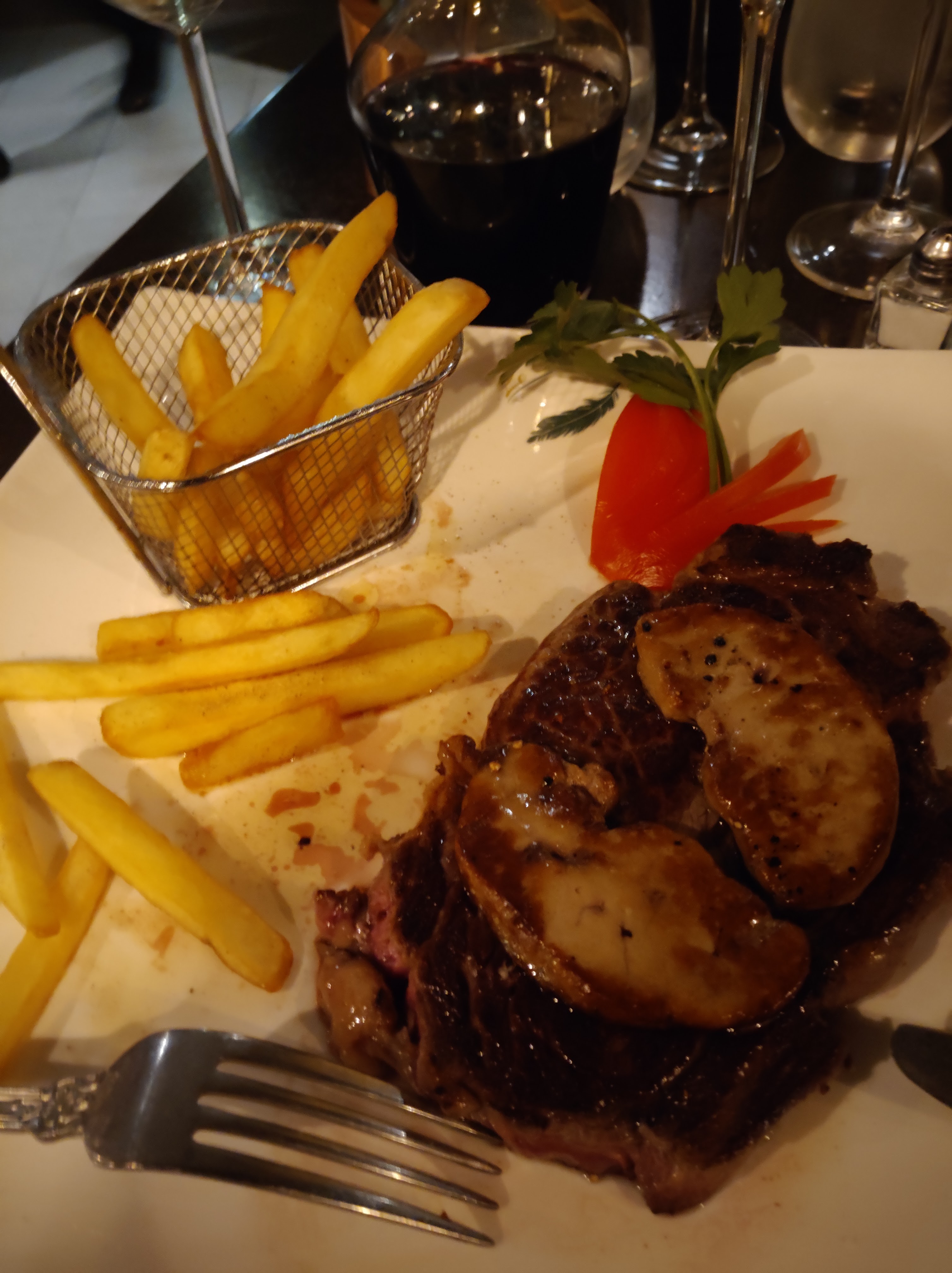Je recommande fortement, beau cadre, ravis de la prestation mais surtout gustativement !! Personellement, l'entrecote est très bonne mais avec le supplément foie gras c'est juste magnifique en bouche ! Pavé de rumsteack pris pas un ami et c'est juste TOP. Qualité au rendez-vous ! De plus café gourmand, plus que gourmand, mais on vas pas se pleindre, bien au contraire ! Je reviendrais ici dès mon retour sur Senlis