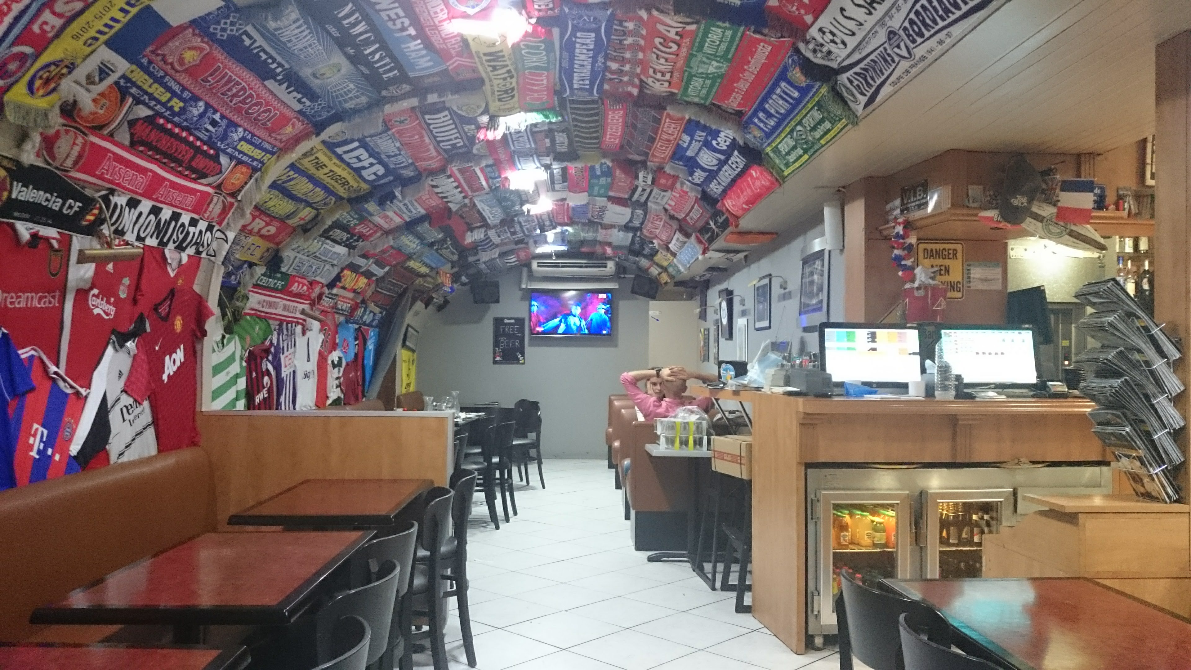 Endroit bien situé,malgré que le décor ne soit pas extra,écharpes et maillots de foot en expo au plafond.Côté nourriture pareille,ça sent pas le frais ni le fait maison.Bref pas content du menu du jour et du reste
