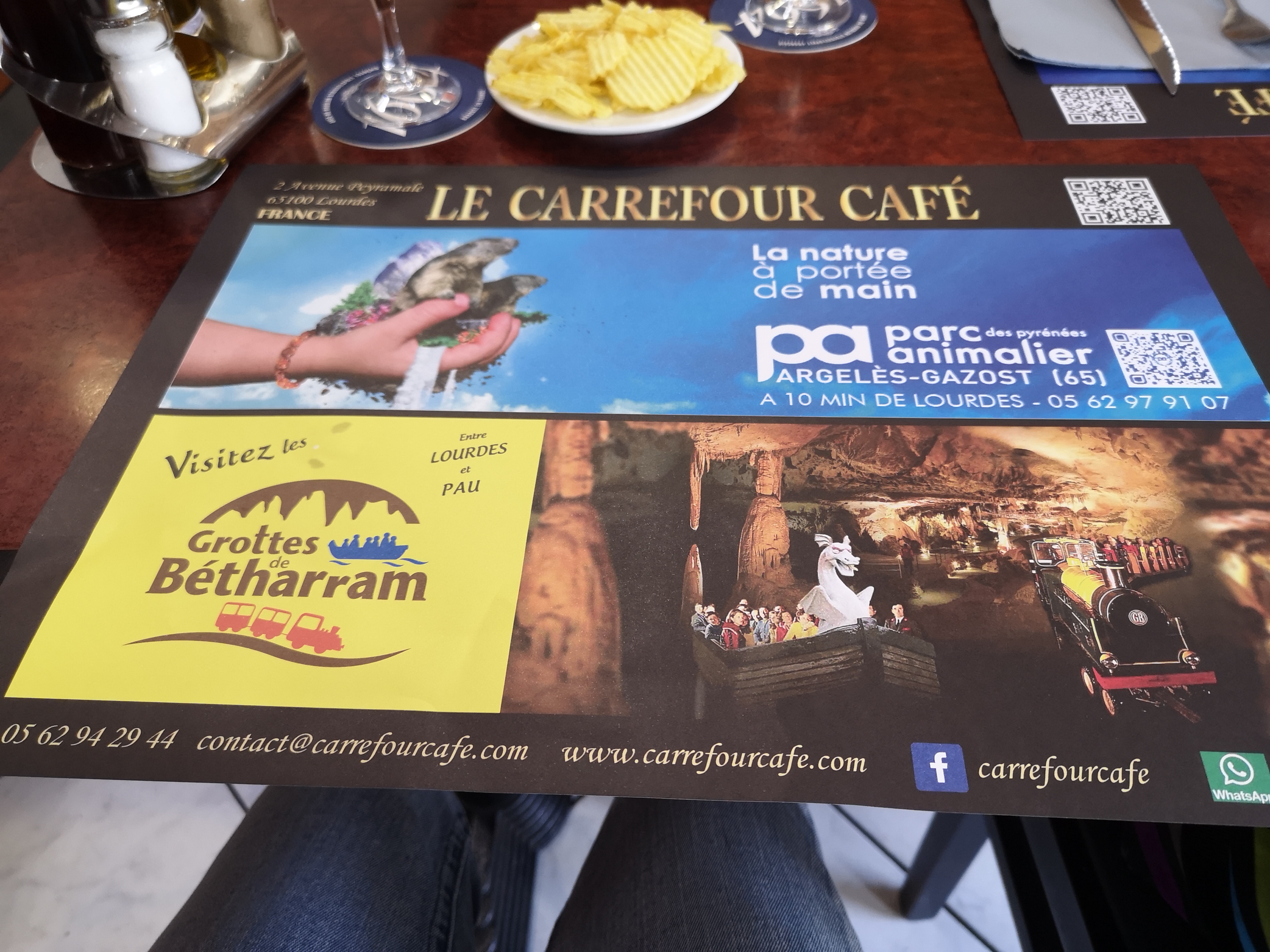 En cette période de Noël, Lourdes, cité mariale, vit au ralenti. La quasi-totalité des hôtels sont fermés et peu de lieux de restaurations sont ouverts...mais il y a beaucoup de monde. Alors, lorsque vous trouvez un endroit pour vous restaurer.... alléluia!!! Sauf qu'ici, au Carrefour café, on n'accepte pas les personnes seules (à 13h00) lorsqu'il ne restent que deux tables de quatre personnes... Là, on touche le fond....du Gave!! Célibataire, couple, famille: un client c'est un client. Il y a un passé pas si lointain que l'on appelait le pandémie du COVID qui a entraîné la fermeture de très nombreux commerces à Lourdes.