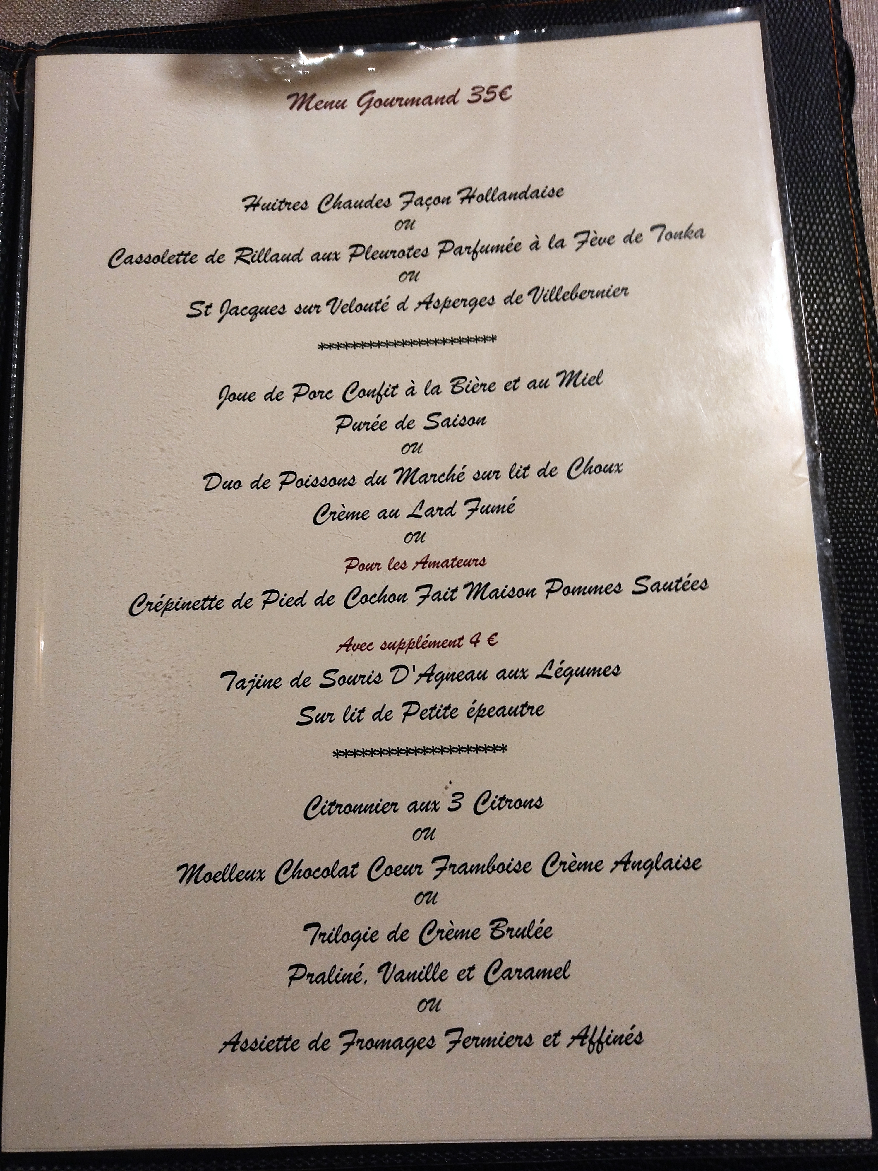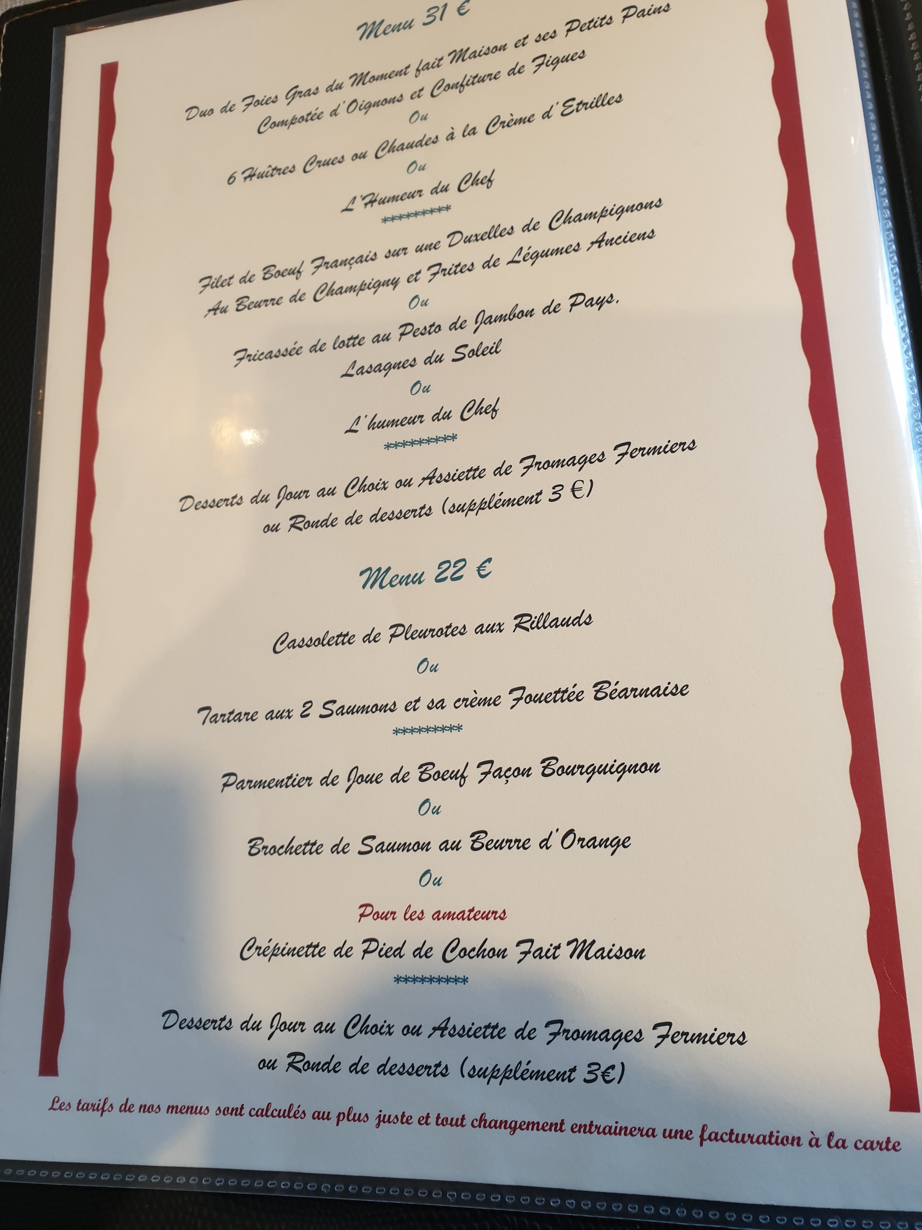 On y est trop bien , repas au top , ha ces pieds de cochons en crépinettes un régal et la déclinaison de foie gras ..y sommes allés et on y retournera et un super accueil..personnel au top même celle qui démarre sa carrière..clin d'oeil