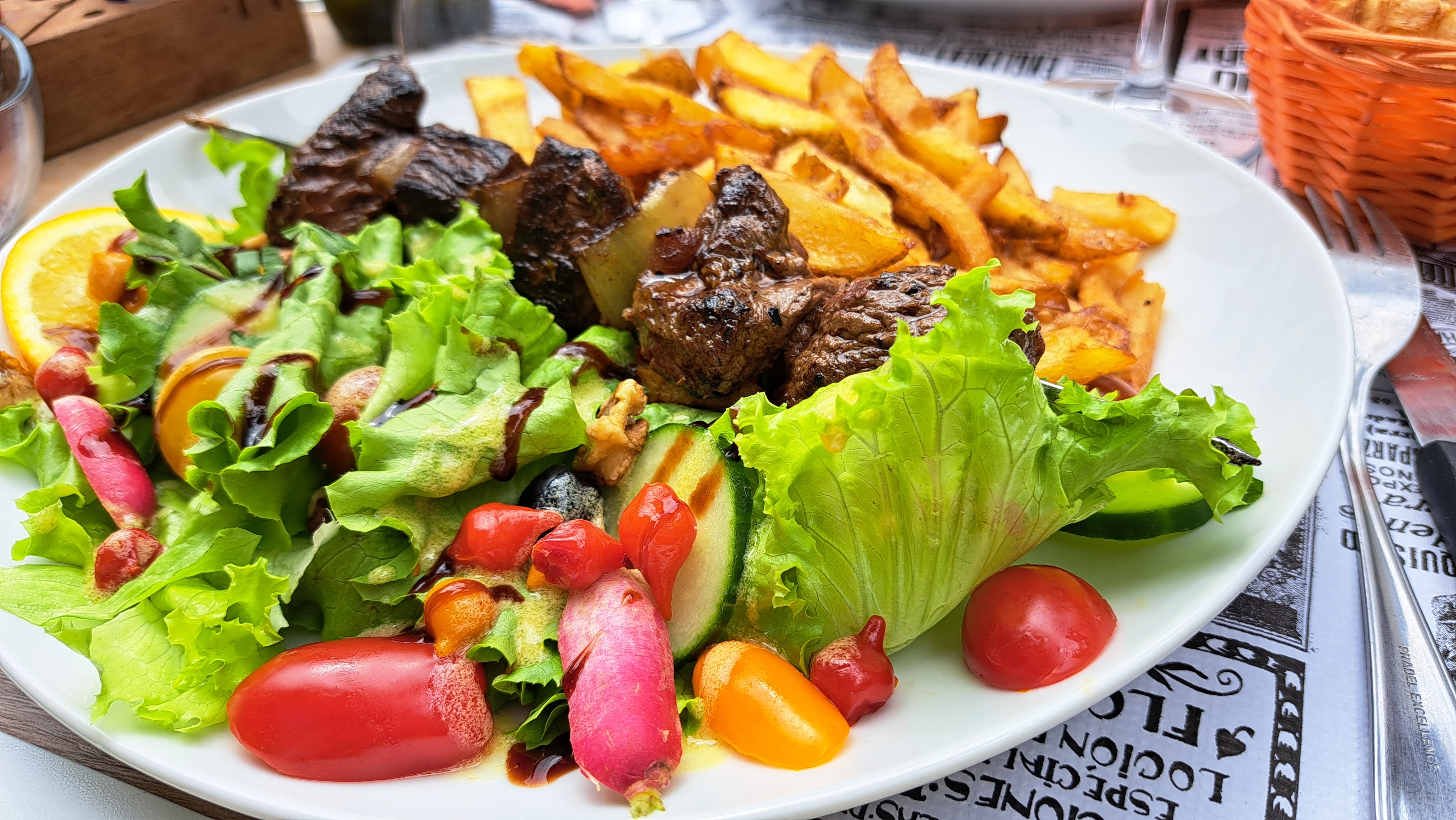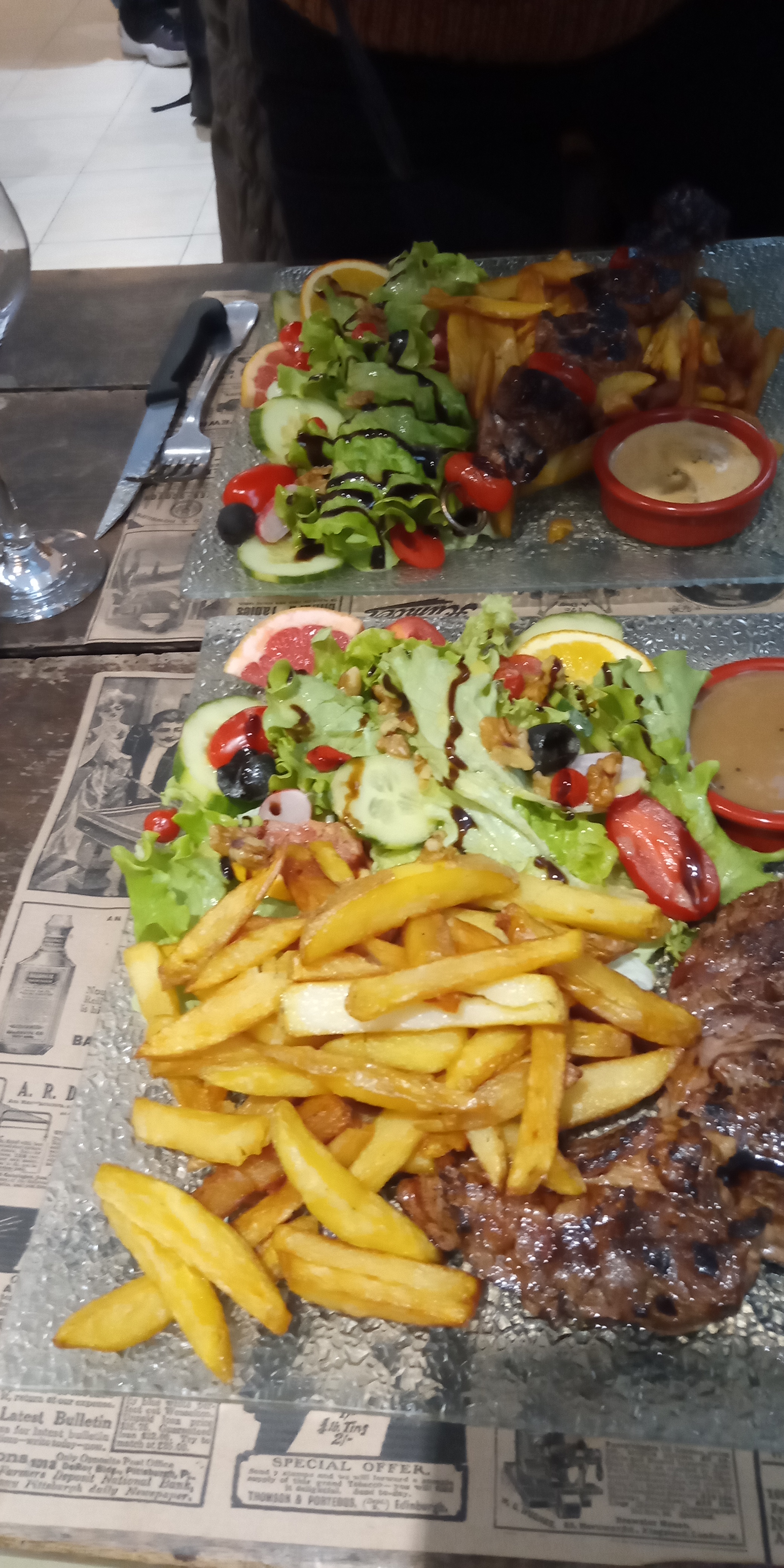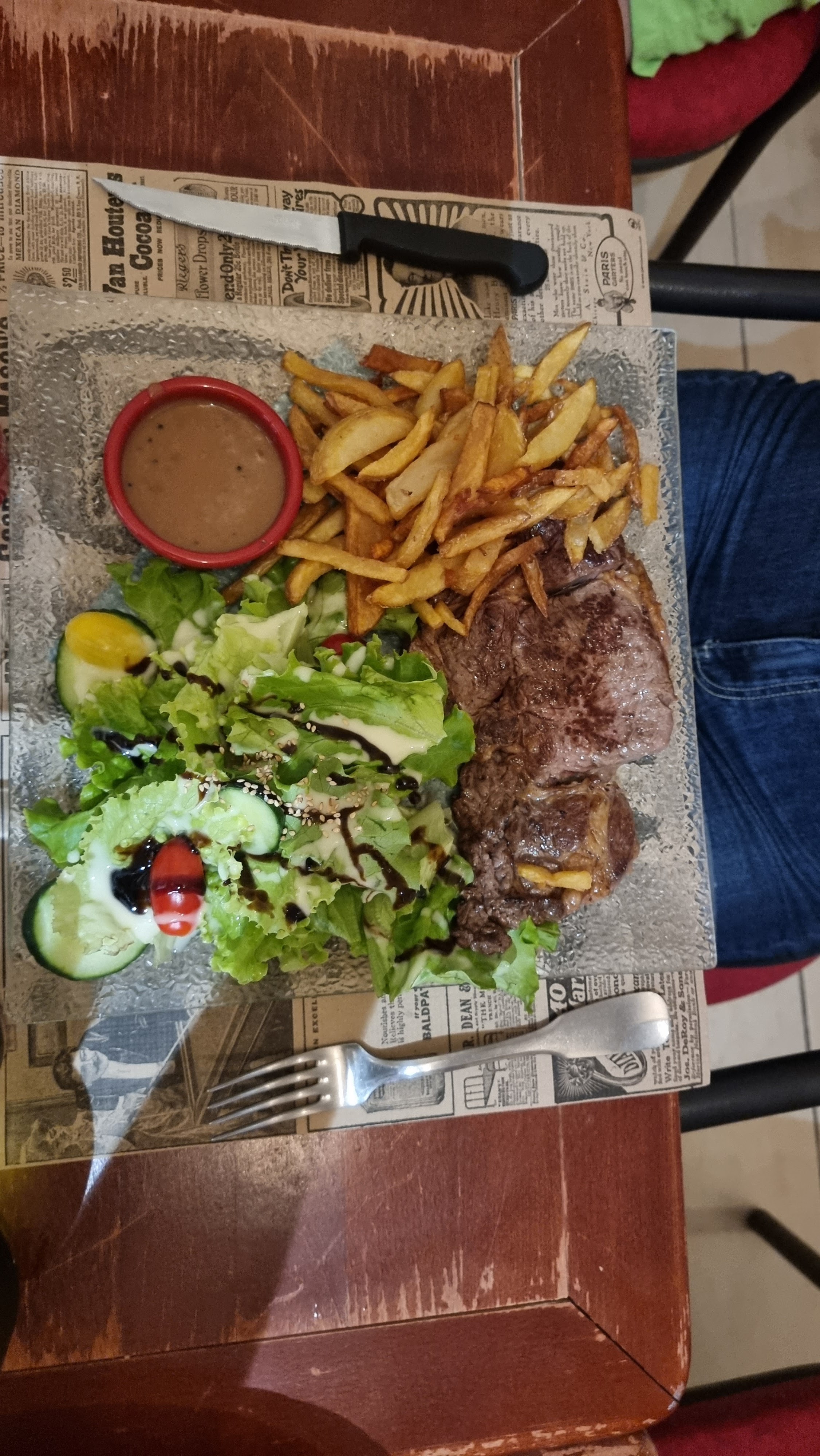 Accueil chaleureux service rapide assiette copieuse viande très tendre et goûteuse accompagnement frites et salade conséquantes à refaire