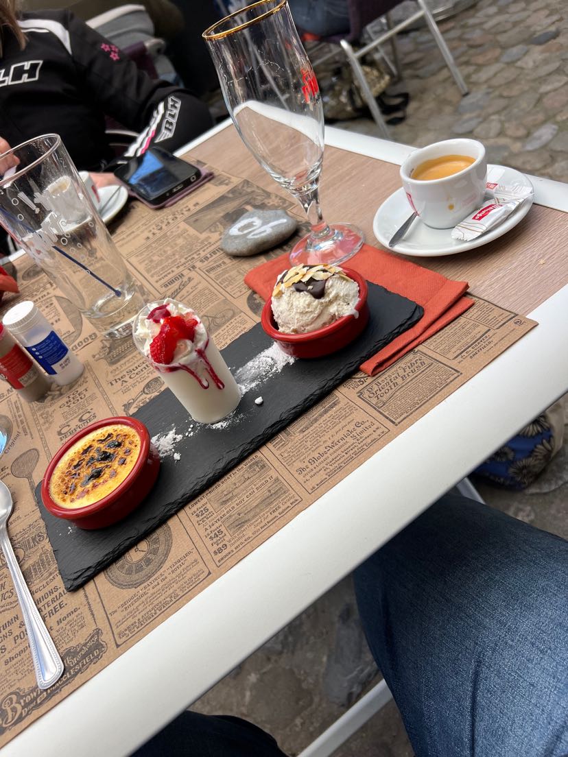 L'ambiance est géniale. Le restaurant est situé au milieu du « centre ville » d'Aiguez. Le service est sympathique et relativement rapide. Mais le problème c'est la nourriture. Les plats principaux en particulier ne sont rien d'autre que de la restauration rapide française. Salades rien de spécial et sans coup de pied. Le steak tartare semble sortir directement de l'emballage. Les frites qui accompagnent tous les plats sont ok. La recommandation de dessert est le Café Gourmand.