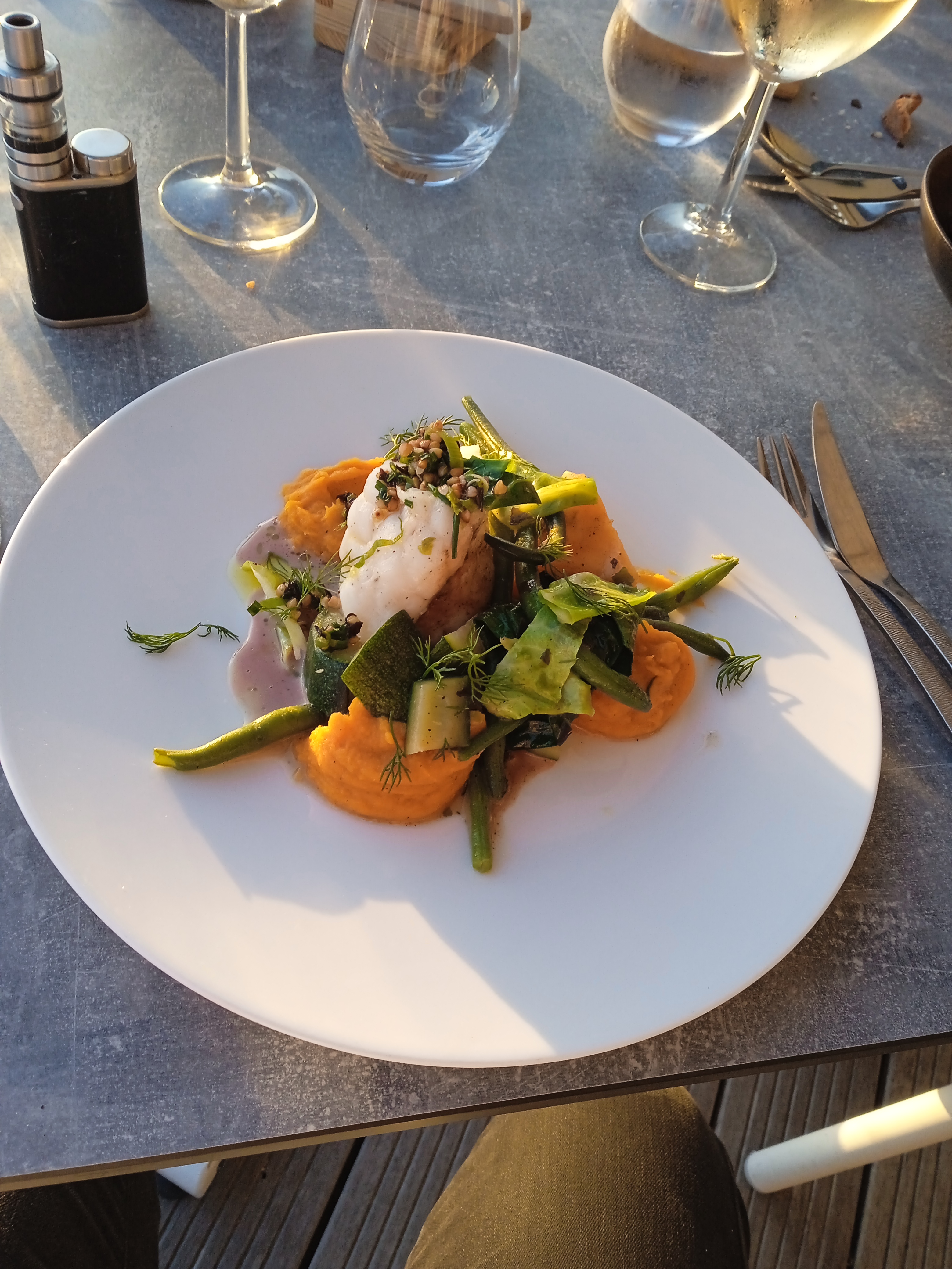 Je suis ravie de mon repas dans ce restaurant. J'ai voulu offrir un repas dans un restaurant de bord de mer à ma maman, alors que je ne mange pas de poisson, la carte propose des plats végétariens sur le repas du soir et du dimanche midi. J'ai pu réserver en ligne en précisant mon régime alimentaire. Le repas s'est passé à merveille. Le dessert chocolat/houblon fut tout à fait surprenant et gourmand, très bon choix ! Des amuses bouches sont proposés à l'apéritif et des mignardises au café, prévoyez une balade en bord de mer après le repas ;) J'ai trouvé le service soigneux et rapide, c'était très bien.