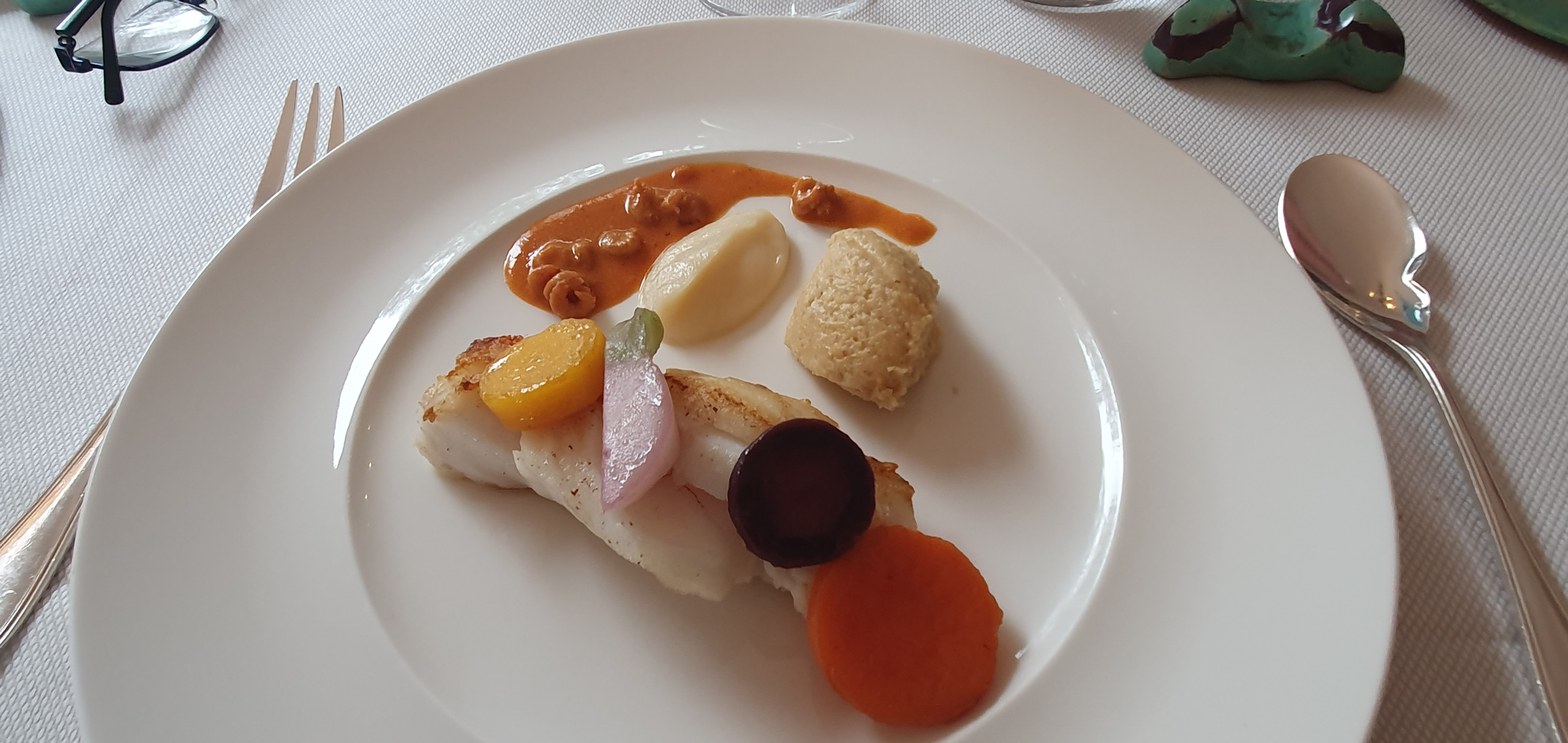 Plats délicieux, le filet de maigre ... un pur bonheur, une vue magnifique, une équipe de première classe et une cheffe adorable !