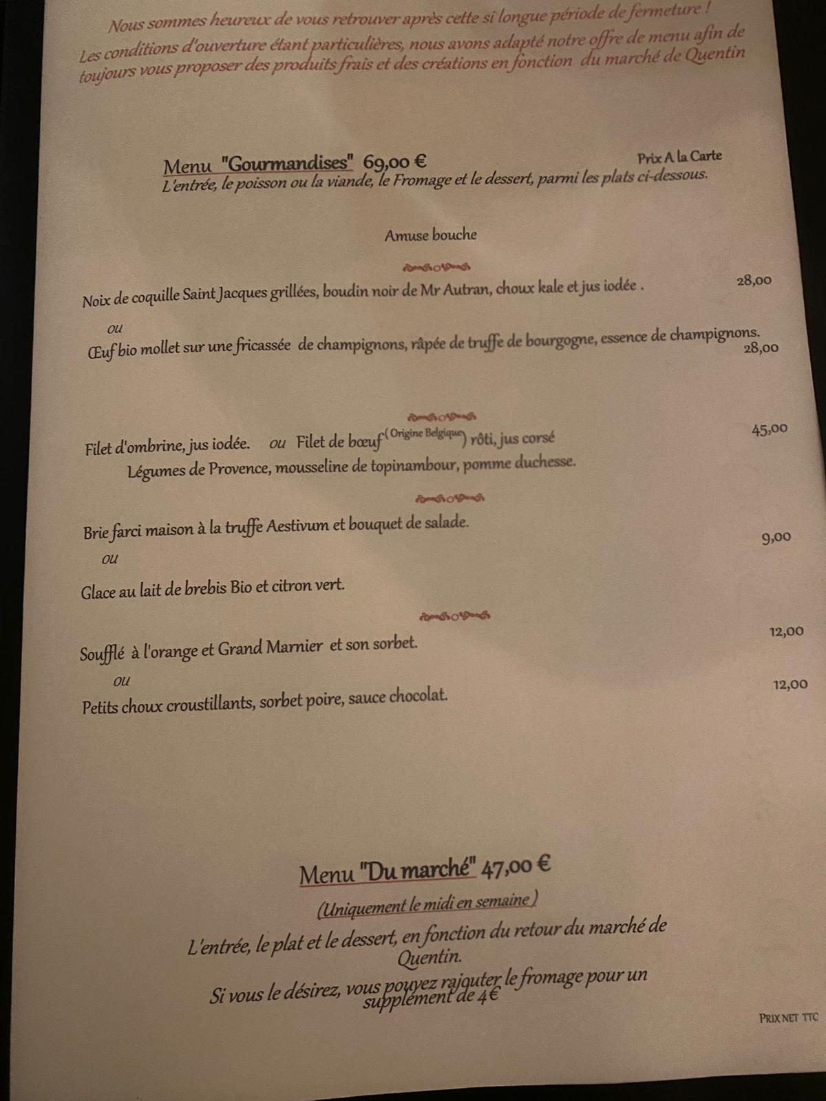 Il y a des adresses ou vous êtes sur de ne pas vous tromper, celle-ci en fait partie! Outre la qualité des mets et matières premières, le service et l attention du personnel font que vous serez satisfait à coup sûr 👍 Vivement la réouverture pour y déjeuner ou dîner dans ce joli cadre et en attendant profitons de l emporter lorsque c est possible.