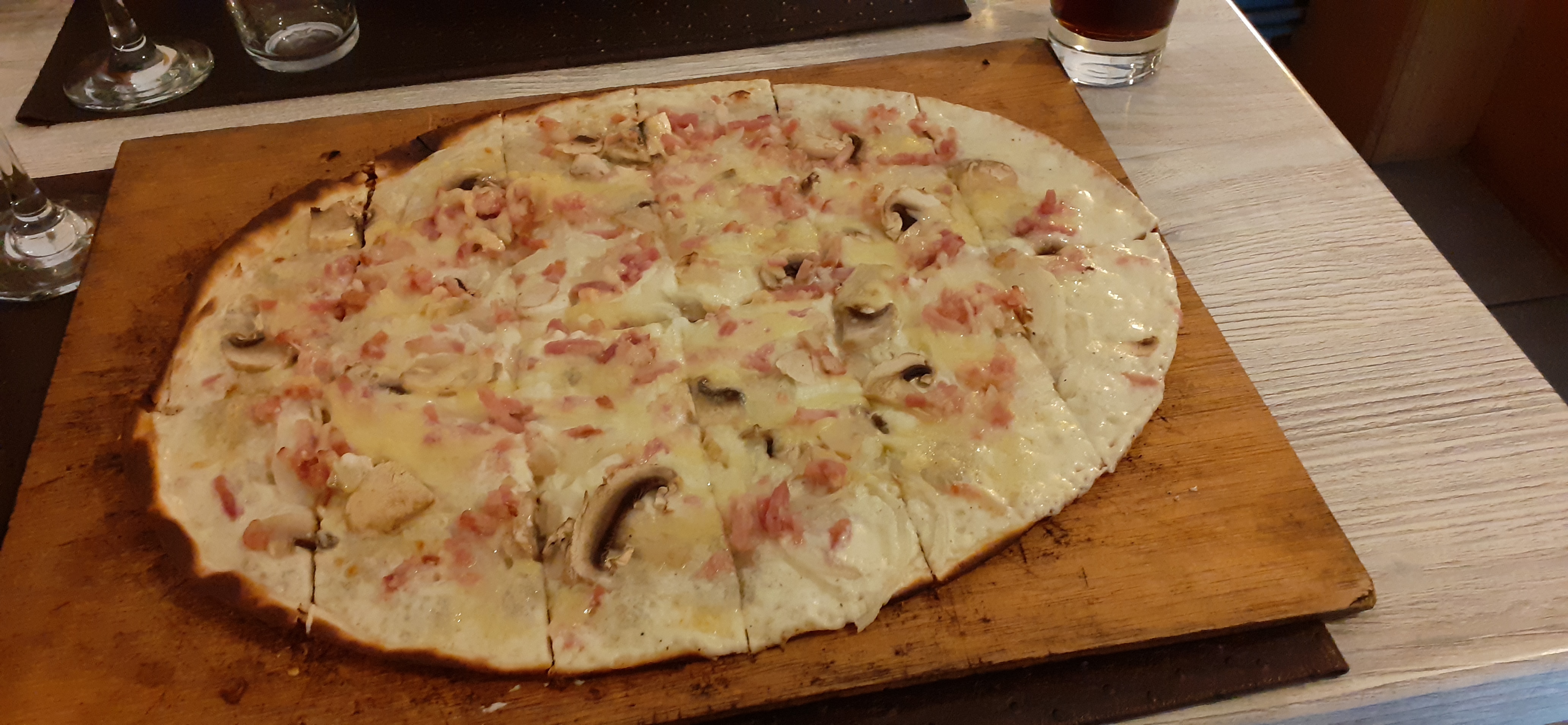 Je suis passée récemment et je trouve que les tartes flambées sont assez légères mais niveau qualité-prix c'est assez correct. Le menu enfant qu'avait demandé mon petit frère n'était franchement pas onctueux. J'ai pu goûter sa pizza qui n'avait pas un goût très fameux mais que j'aurais défini par un goût de liquide vaisselle sans trop m'avancer sur certains propos. Le menu enfant un peu trop cher pour ce que c'est. Mais le lieu et le personnel est plutôt correct.