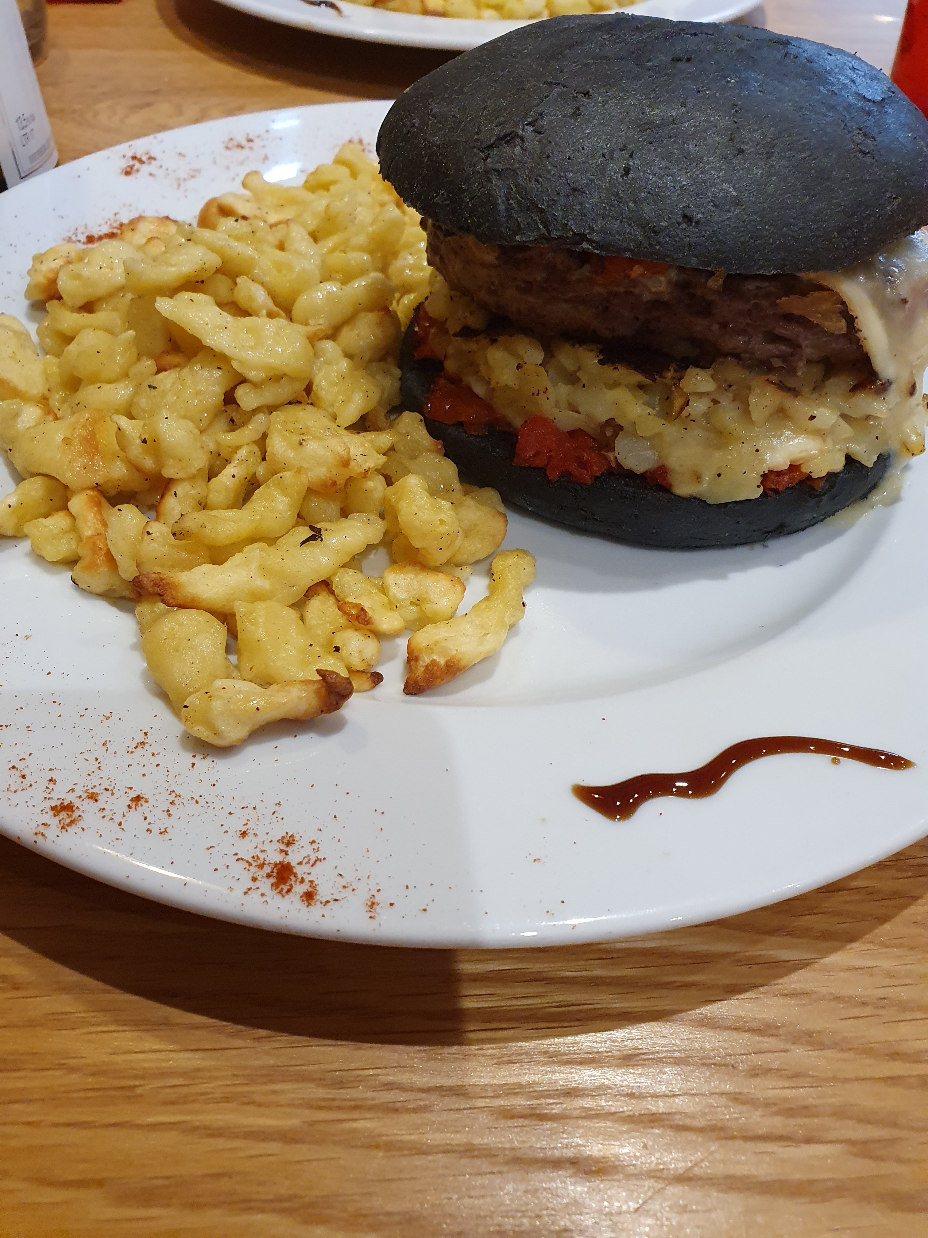 Lieu sympathique, serveuse très professionnelle. Déçue par la flammekueche au munster ( quelques bouts de Munster ajouté sur une classique pas très goûteuse) . Le cordon bleu au munster ( trop copieux) contenait en fait de l'Emmental. Le burger était quand à lui très bon