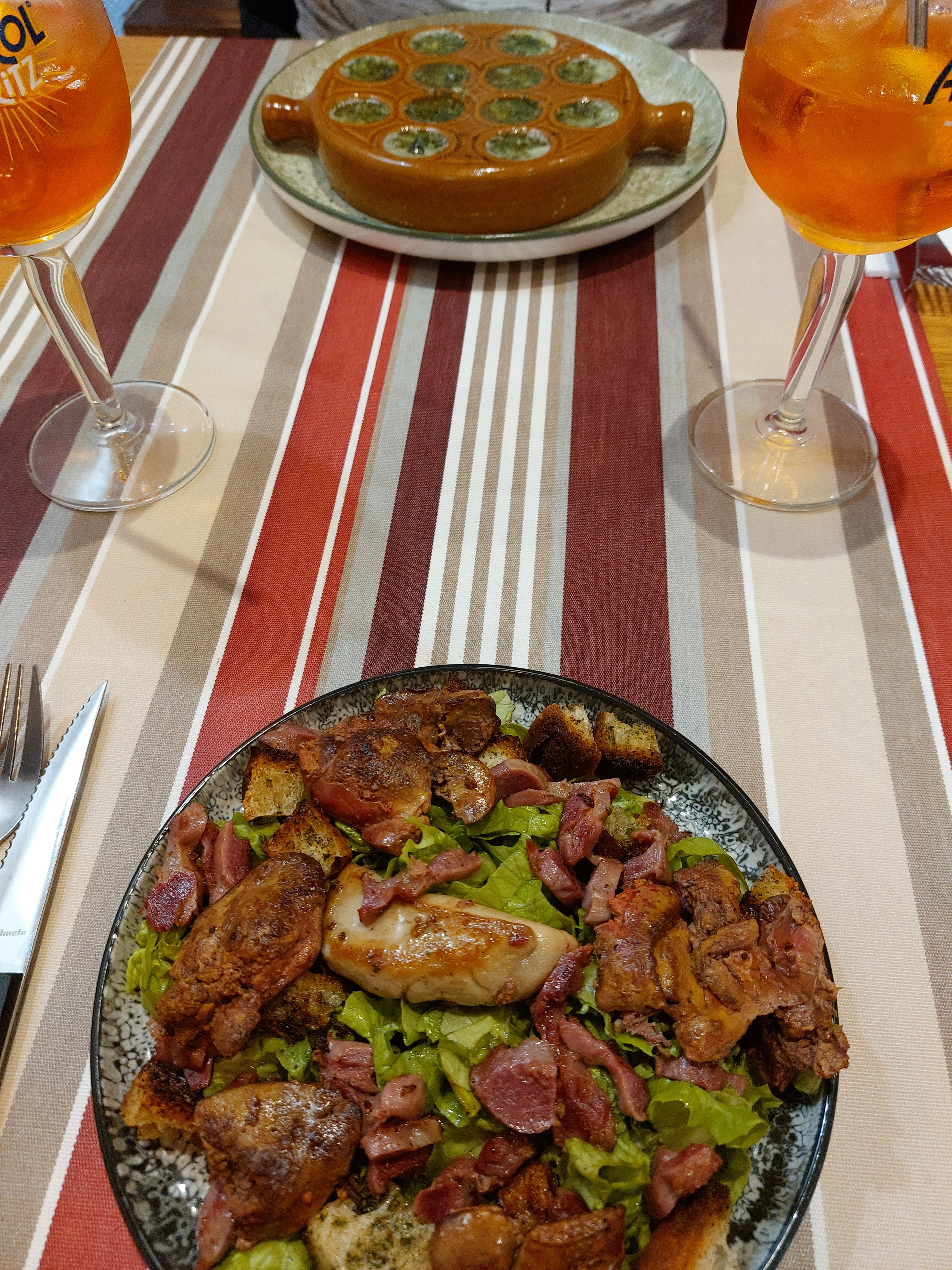 Très déçu, à notre arrivée une voiture stationné à l'entrée sous le porche déjà très négligé ensuite mon plat une escalope de veau pané une catastrophe car il fallait une loupe pour trouver la viande par contre 5 millimètre de panure et la salade de ma compagne avec foie gras et Saumon aucun goût