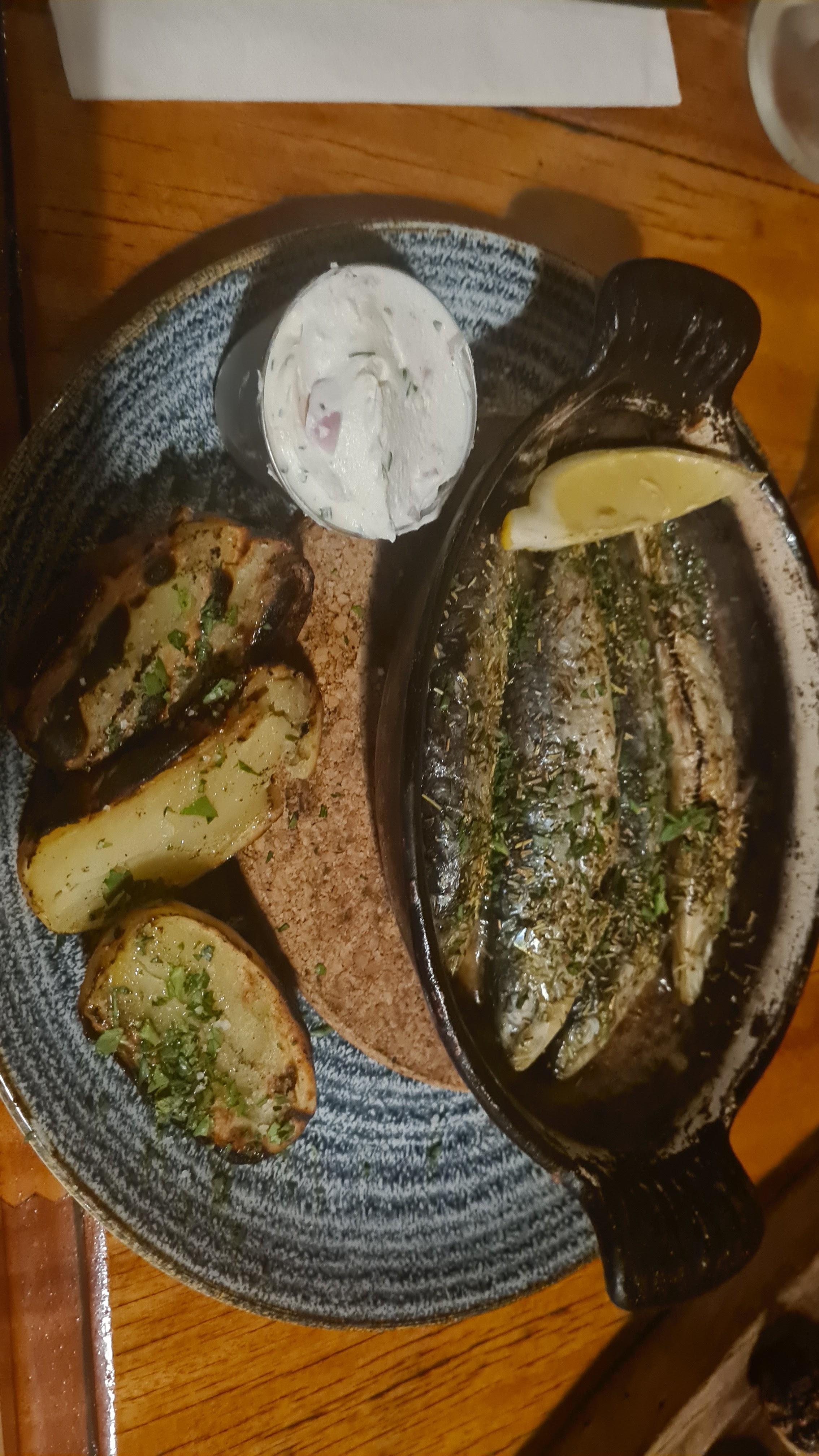 Petit resto très sympa les sardines trop bonnes avec des pommes de terre et sa petite sauce extra une super soirée qui change des resto pizza et hamburger merci