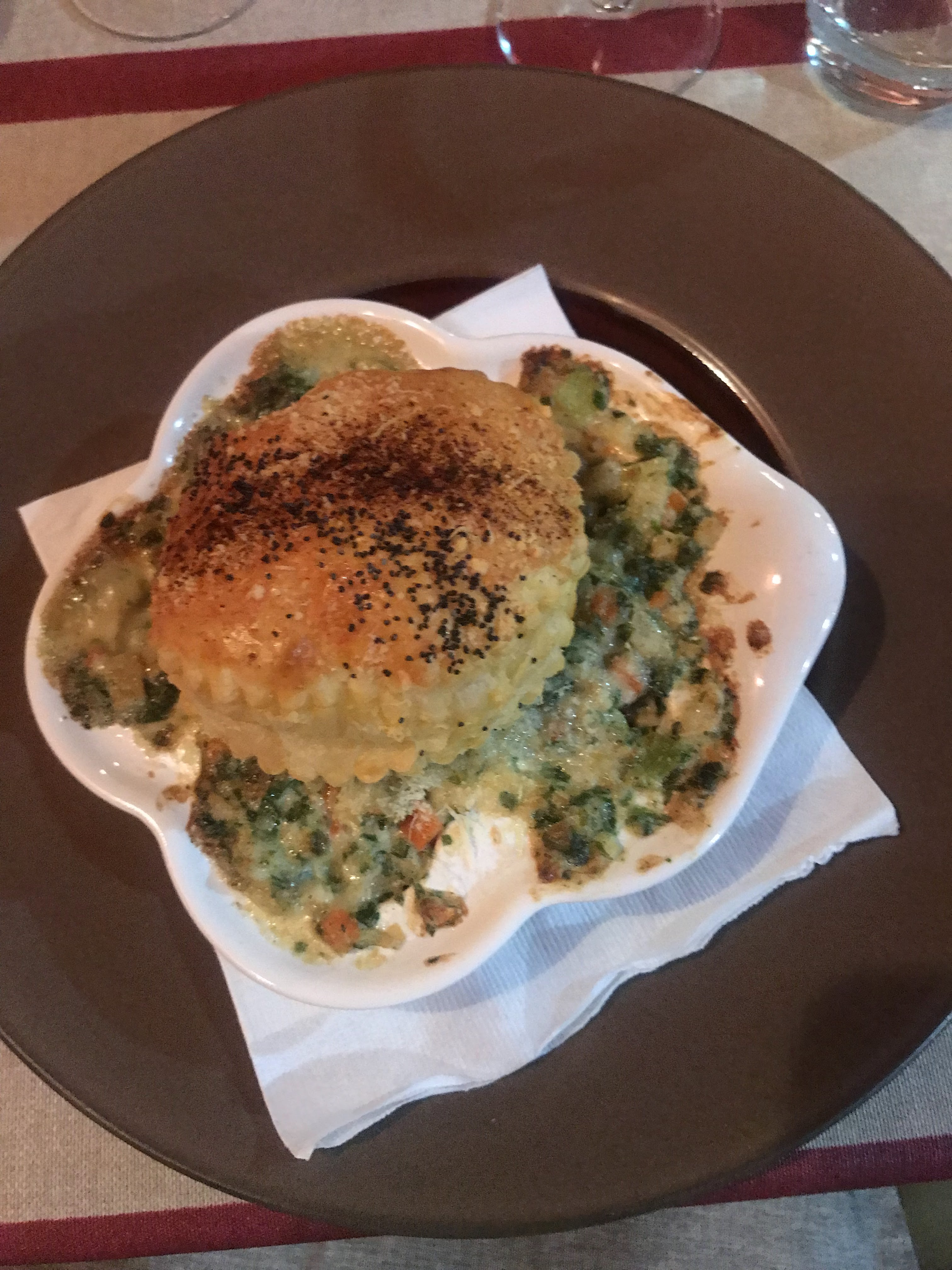 Le repas était délicieux. Nous avons pris le jambon cuit avec la sauce persillé et le gratin dauphinois. Le dessert , une tuerie , un savarin avec une sauce pistache. Le vin était également très bon.