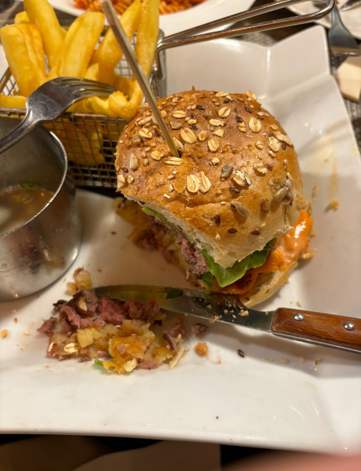 Une grande déception. Après l’excellent accueil en fin d’après midi autour du chocolat chaud, nous avons décidé de découvrir la cuisine le soir au dîner. Malheureusement, la qualité n’était pas au RDV! Nous avons probablement choisi la mauvaise soirée (lundi soir) ou le chef était absent ou pas trop inspiré. Les plats n’étaient pas frais. Le burger chapka sec, et manquait de saveur… cerise sur le gâteau , une intoxication le soir même. Les gnocchis truffes étaient sans saveur! Les pâtes arrabiatta plutôt correct. Le velouté était délicieux mais manquait un peu plus de fromage. Une adresse que je recommanderais pour prendre un verre en fin de journée sans plus !