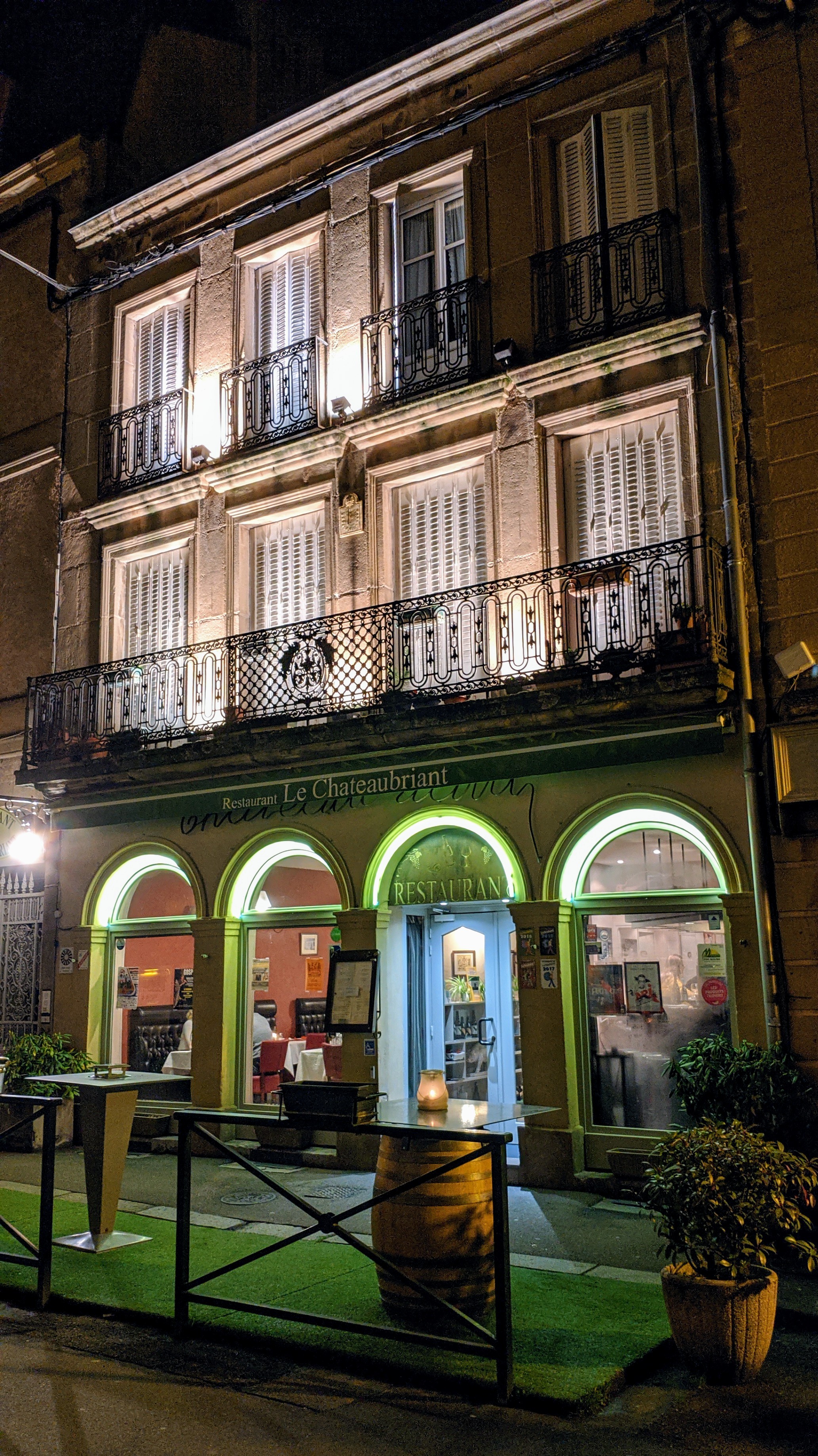 Nous étions de passage, en ce début du mois d'août, direction le sud. Cette étape nous a permis de découvrir Le Chateaubriant. Un restaurant au cadre raffiné et bien tenu. L'accueil est convivial avec les jeunes serveurs et un peu plus guindé avec, semble t-il, la maîtresse des lieux. Au regard de la carte, les plats sont tous très alléchants mais le clou et l'avantage de ce restaurant est le clin d'oeil au terroir avec leur formule bourguignonne. Cette dernière comprend escargots, œuf meurette et dessert au cassis. Une formule maîtrisée, surtout en cuisson, qui vous plonge dans la culture culinaire de la région. Ce dîner dans une ambiance calme et détendue bien que l'orage grondait, a été ponctué de quelques échanges avec le serveur bien sympathique, dont le zest d'humour nous a bien plu. Nous étions de passage mais nous garderons dans nos pensées cette formule bourguignonne aux accents Chateaubriantesques...